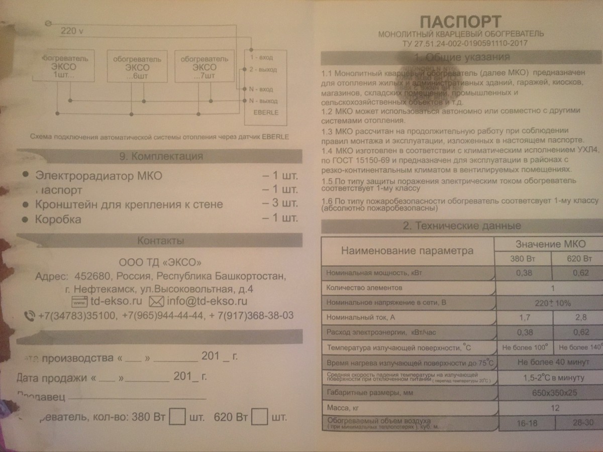 Обогреватель кварцевый настенный