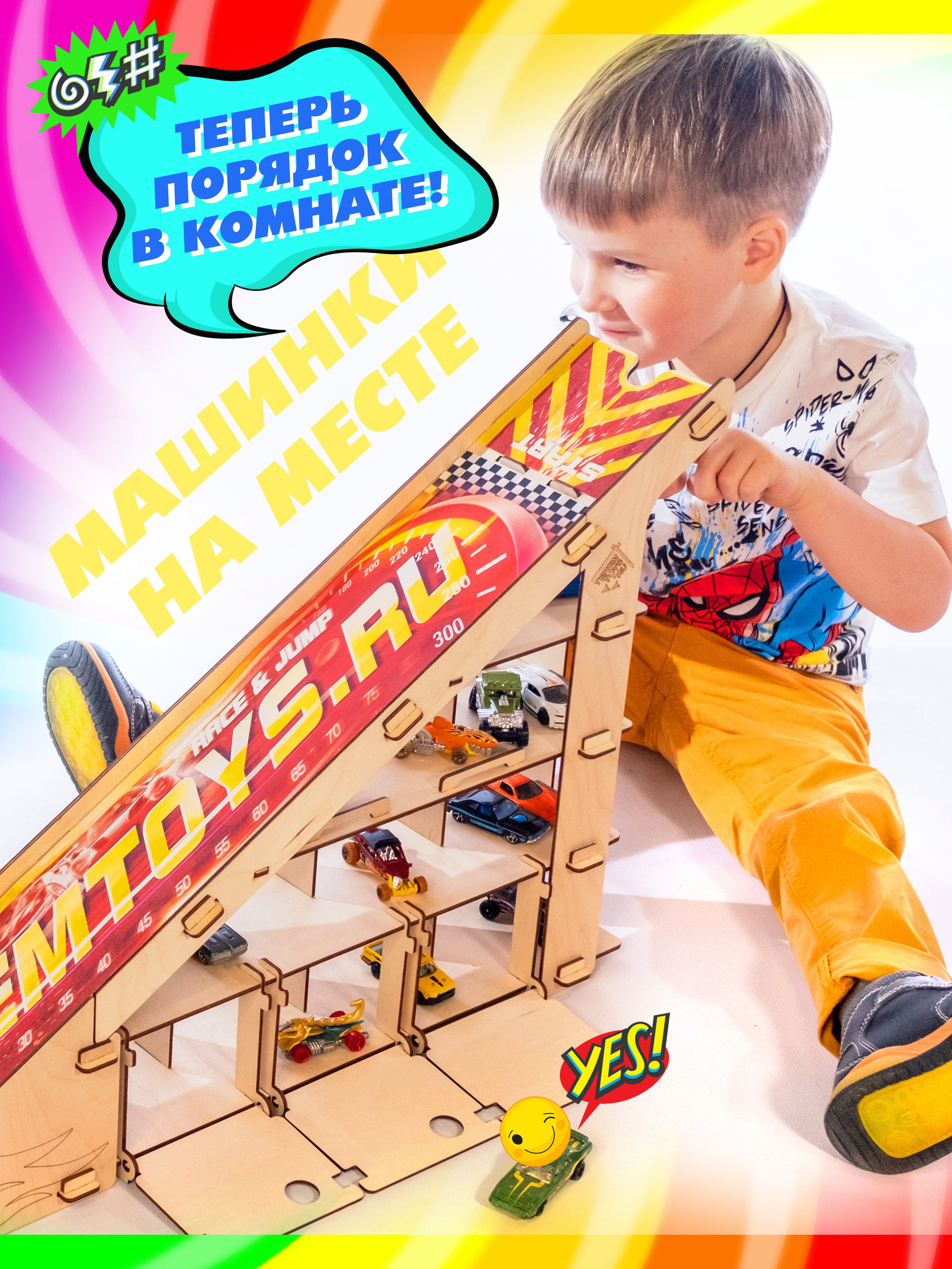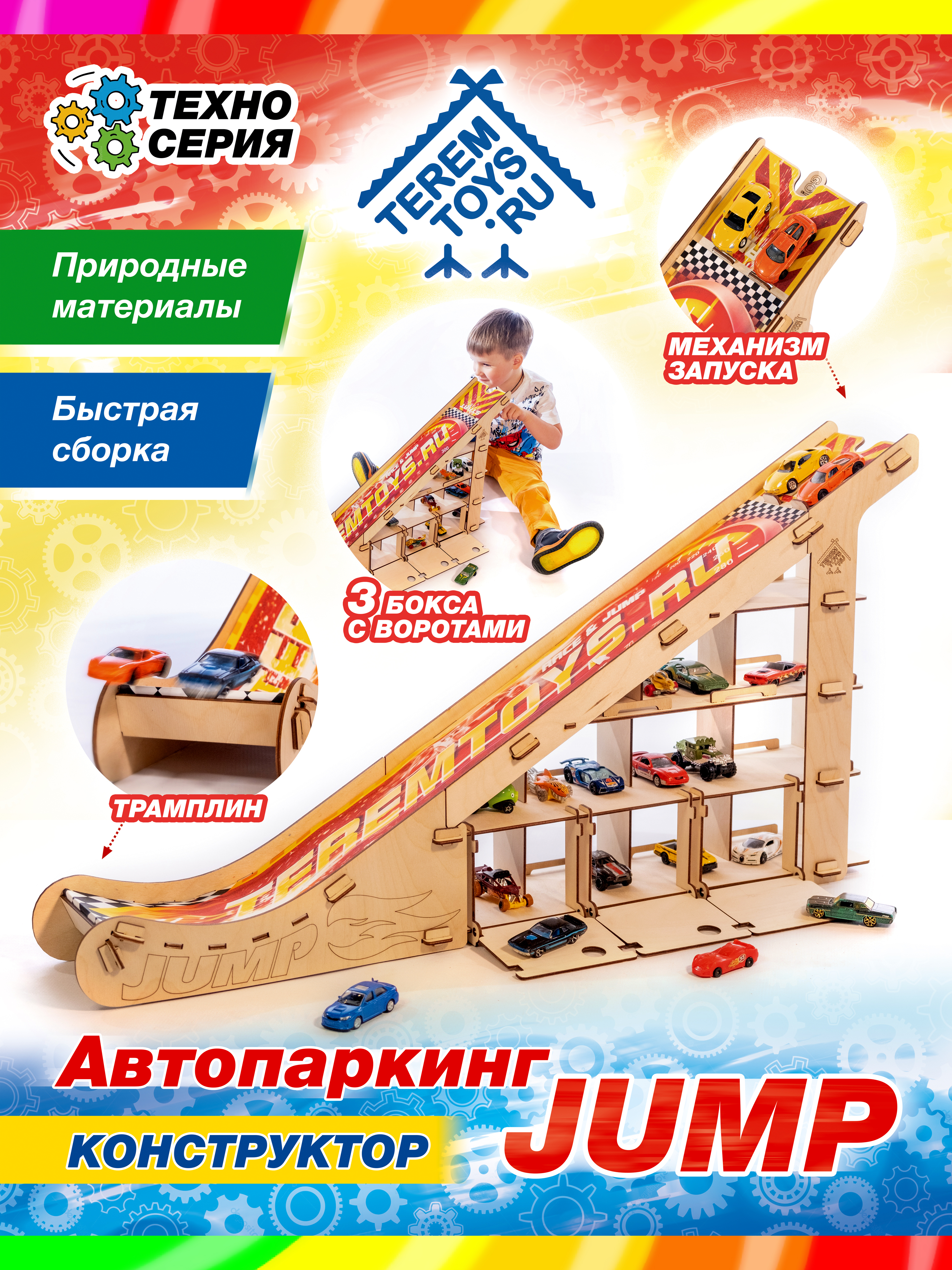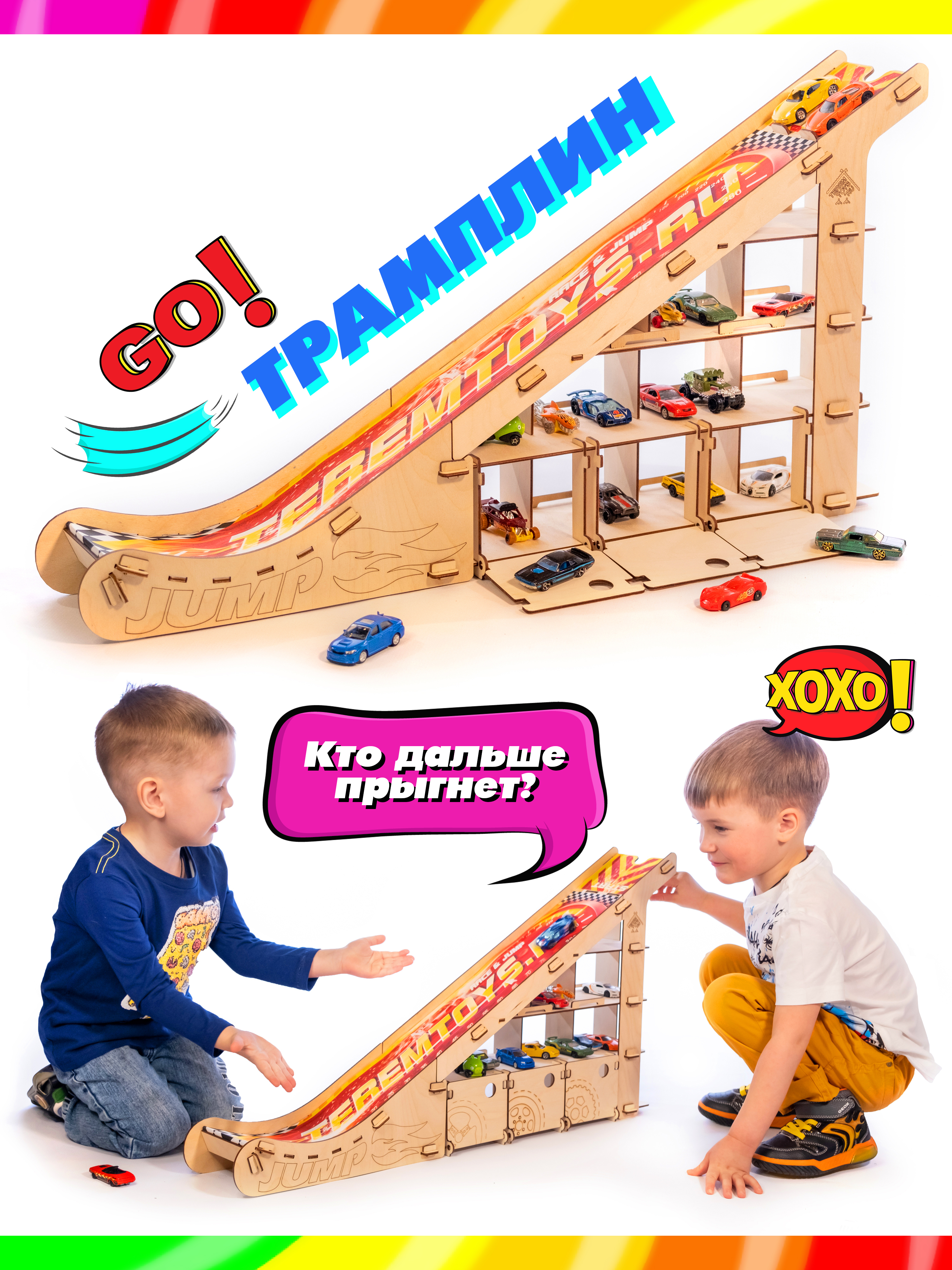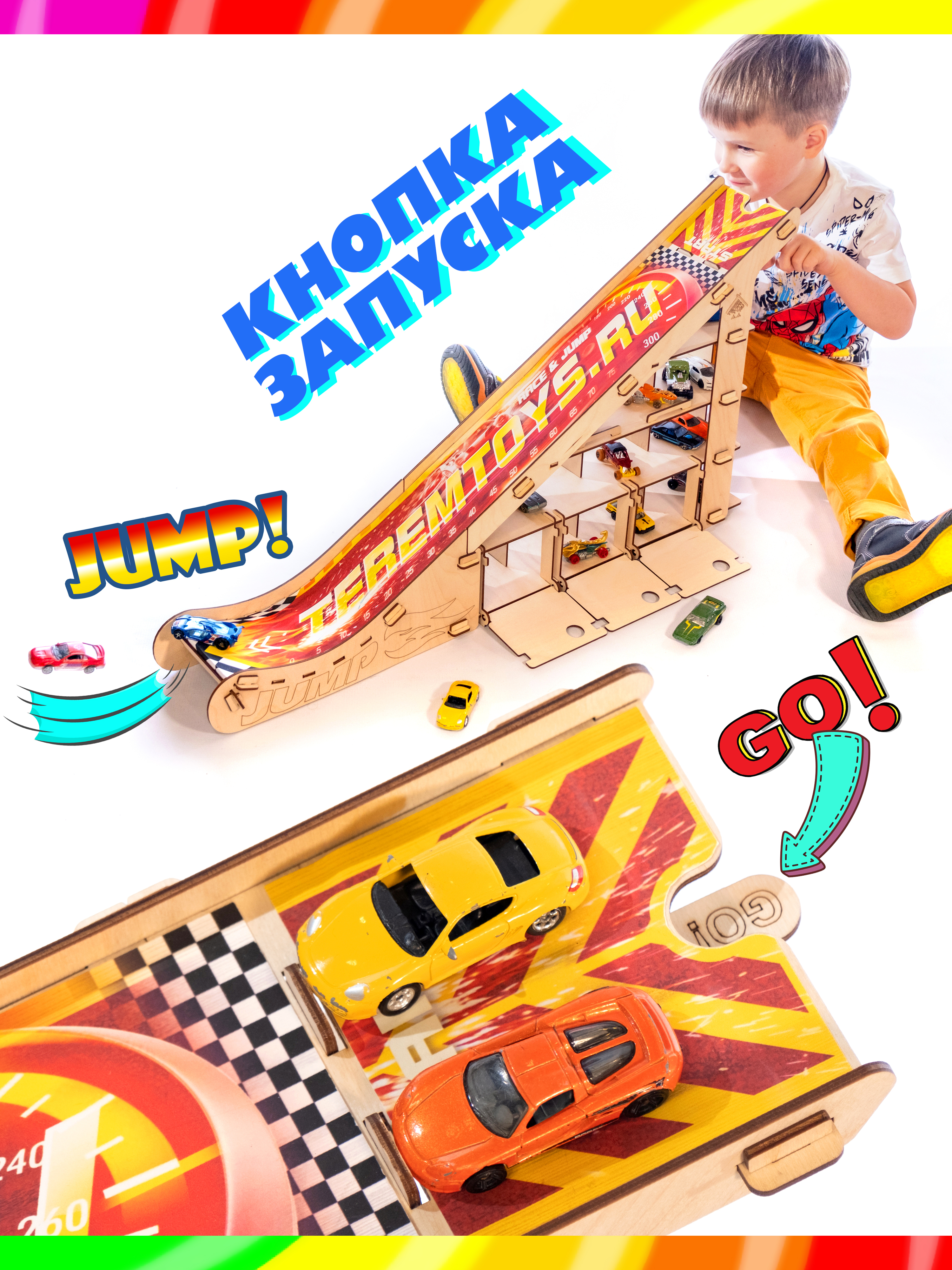 Парковка для машинок с трамплином и пусковым механизмом Jump, гараж, паркинг, полка для машинок
