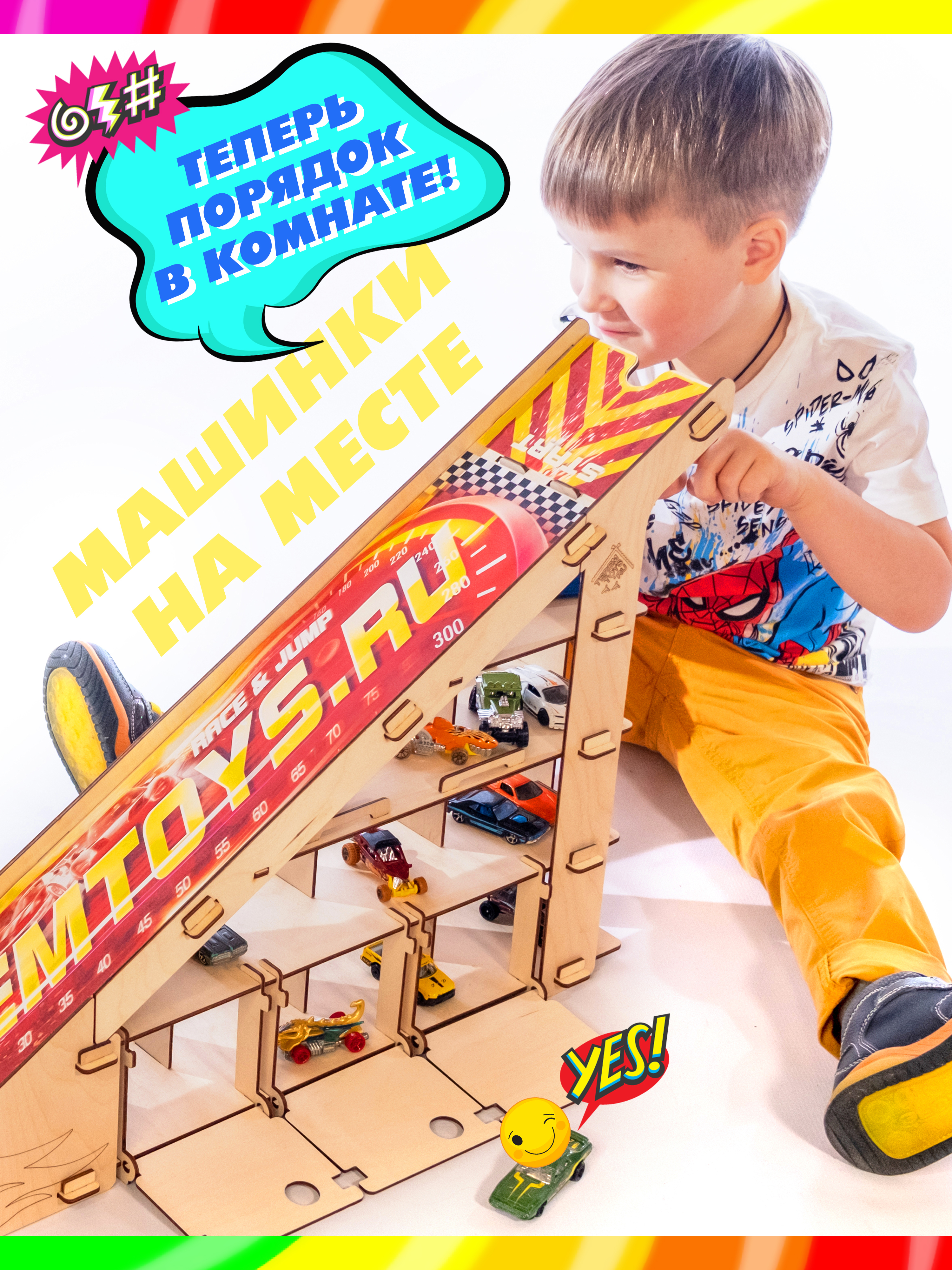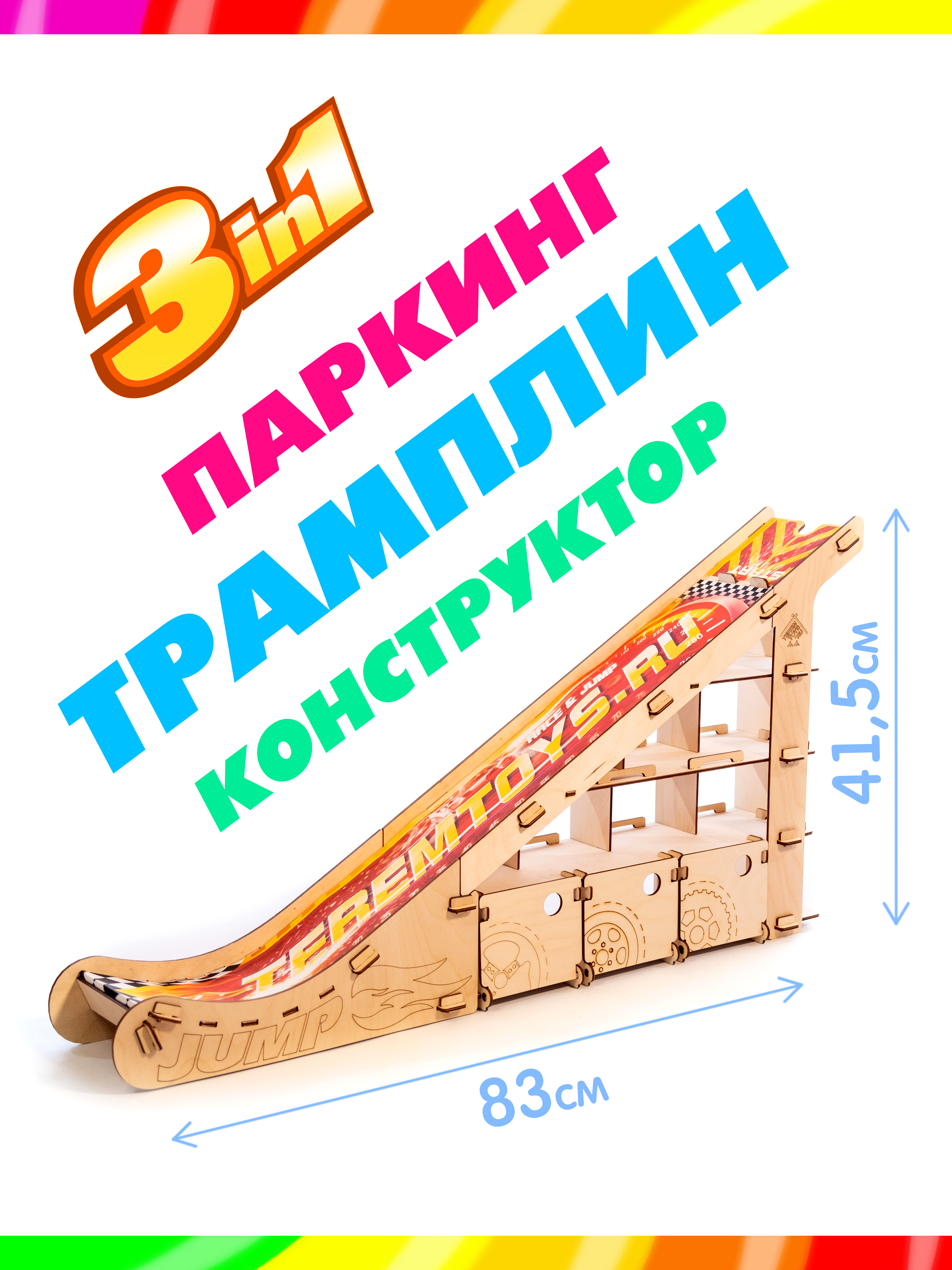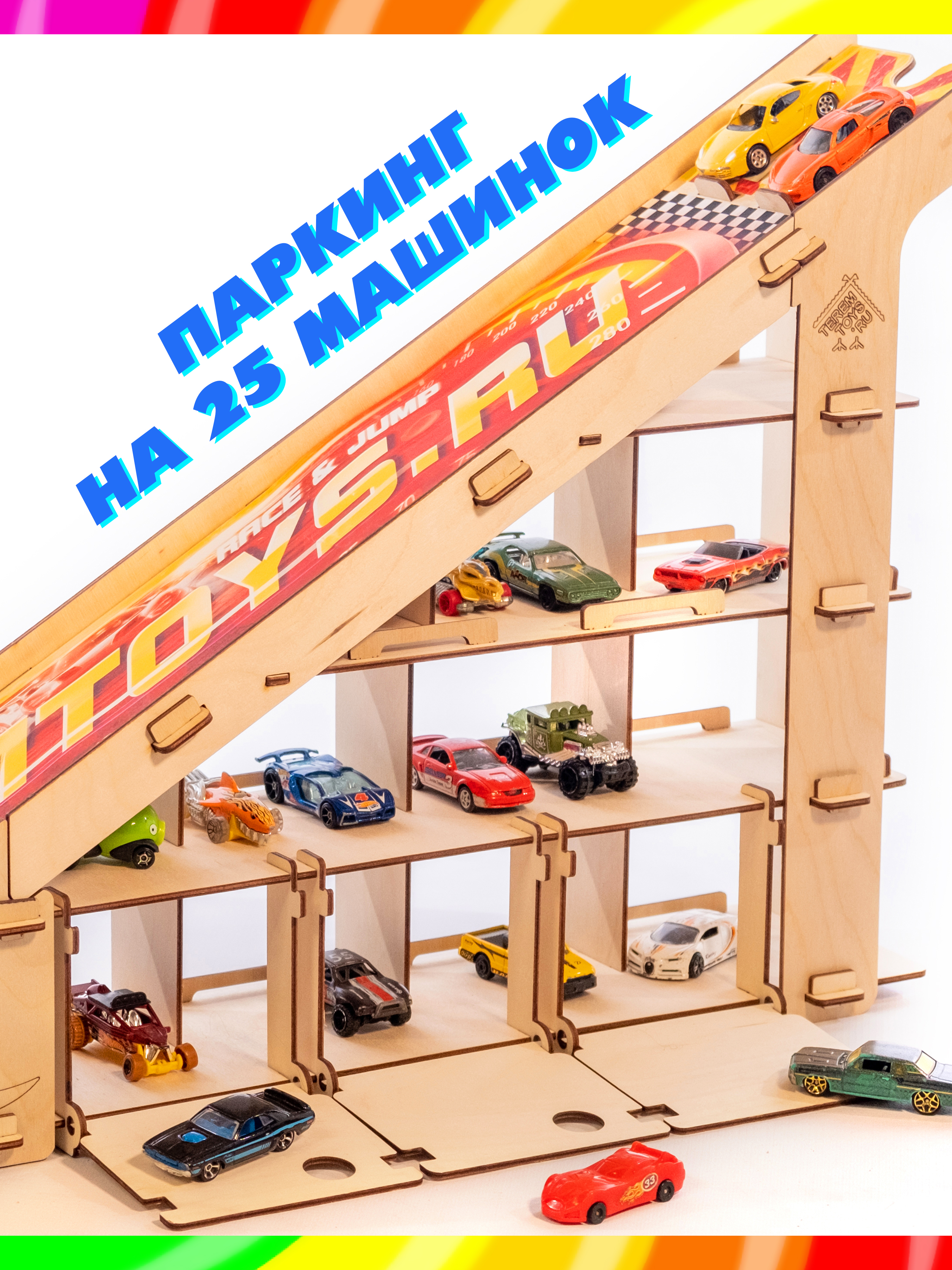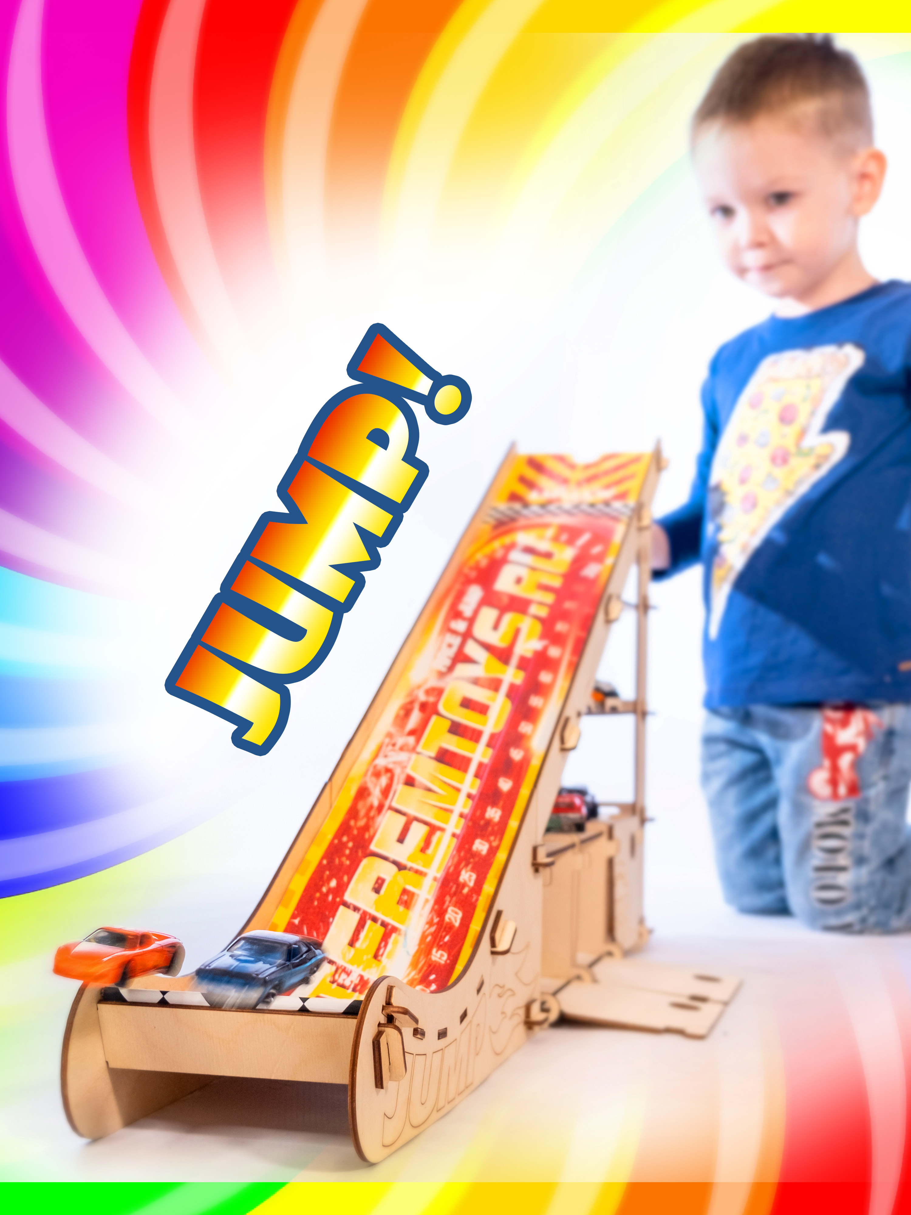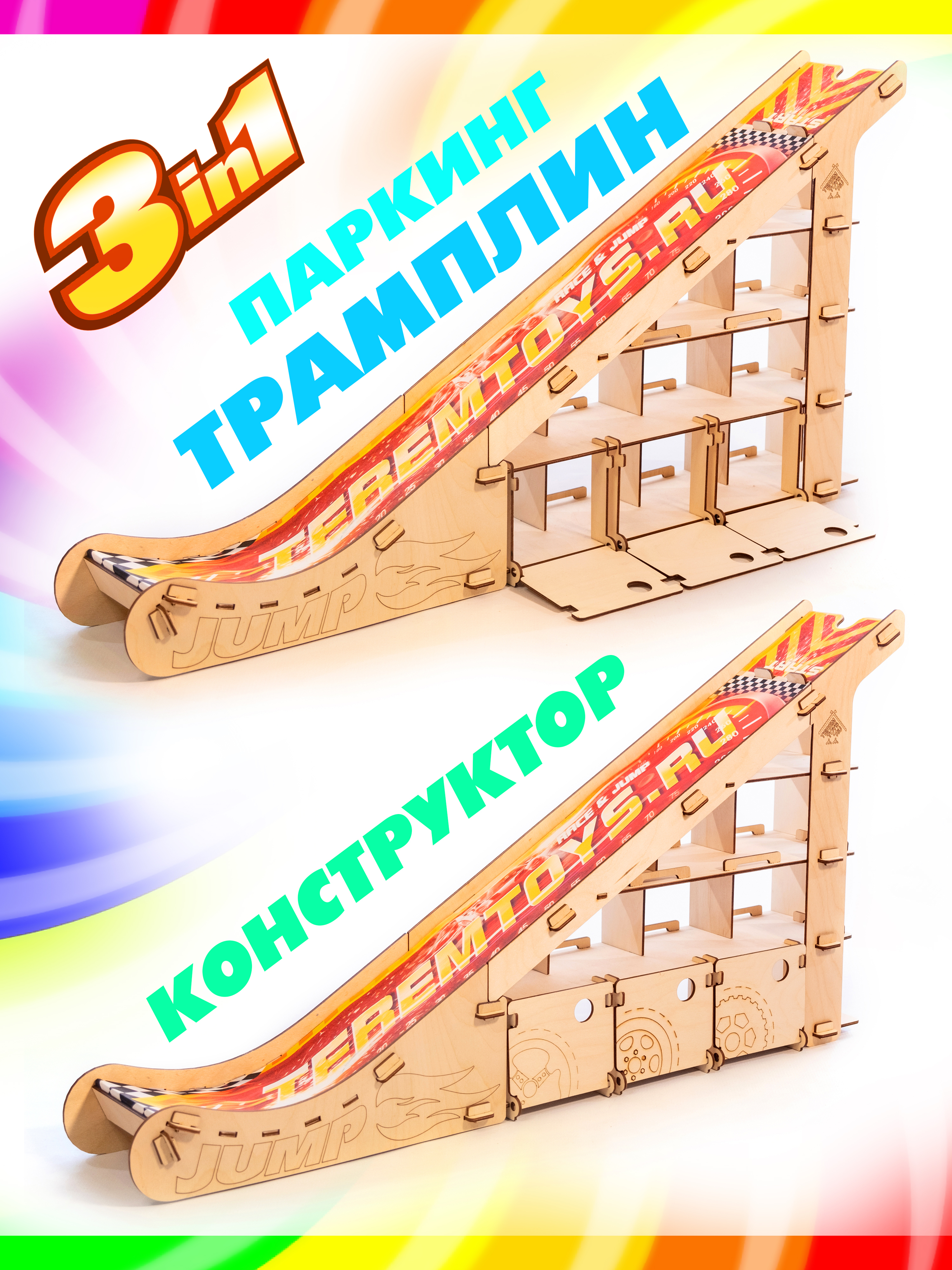 Парковка для машинок с трамплином и пусковым механизмом Jump, гараж, паркинг, полка для машинок