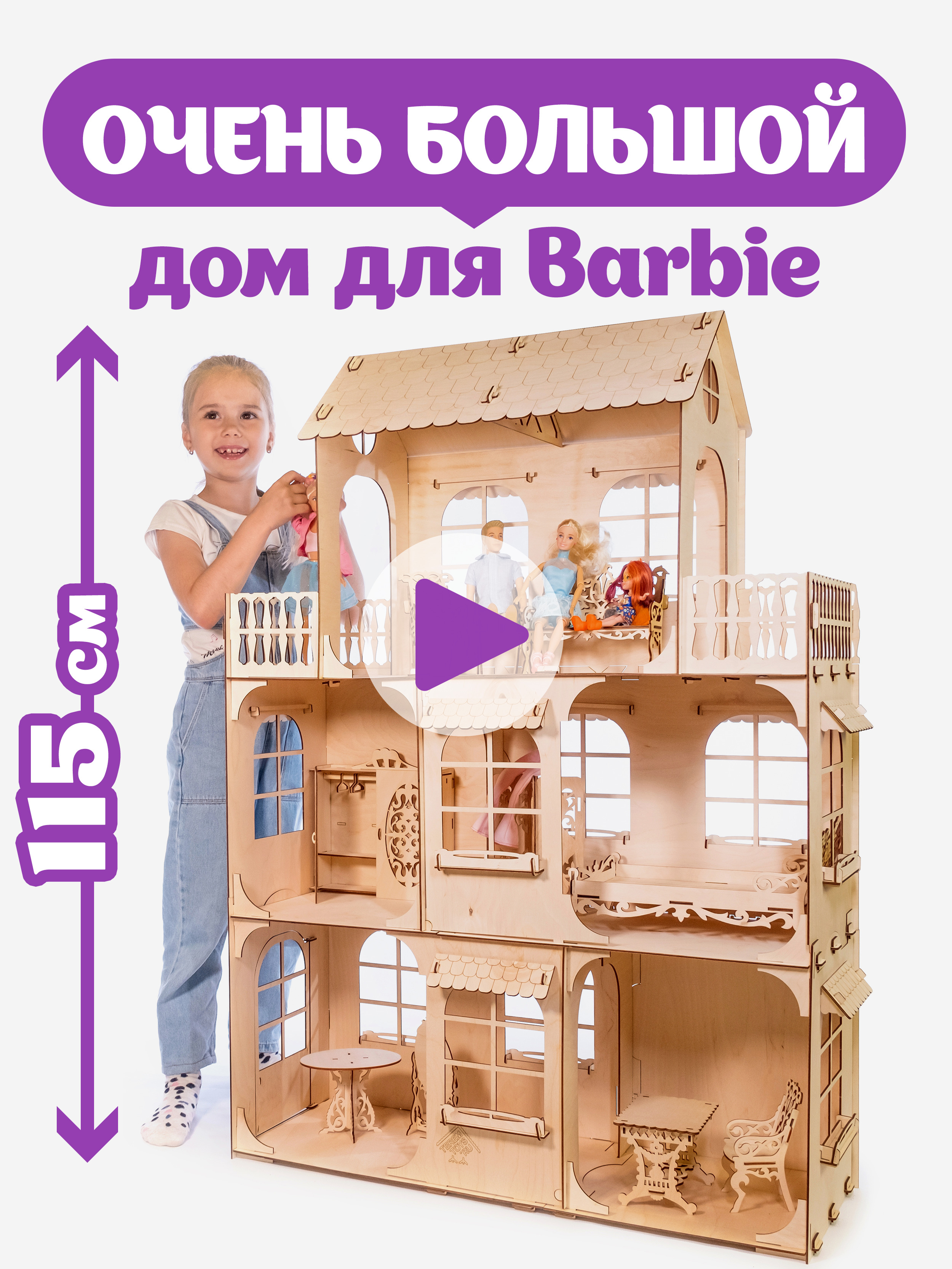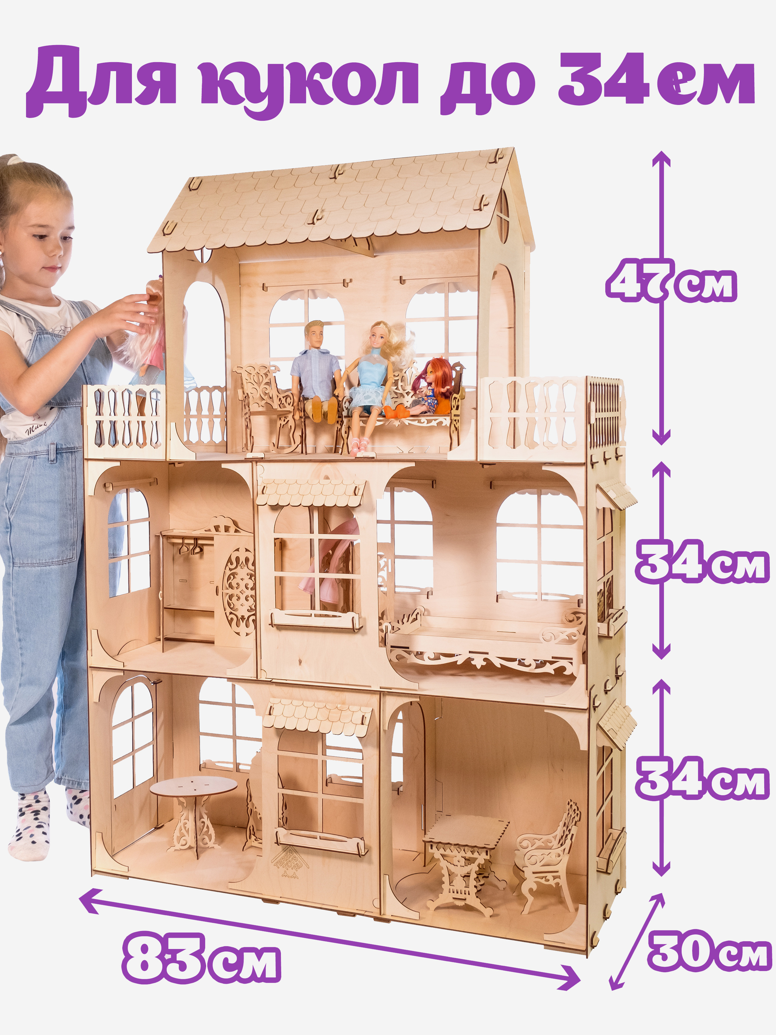 Мебель для кукол до 30 см, Теремок, КМБ-14, Детская для кукол Barbie, беж