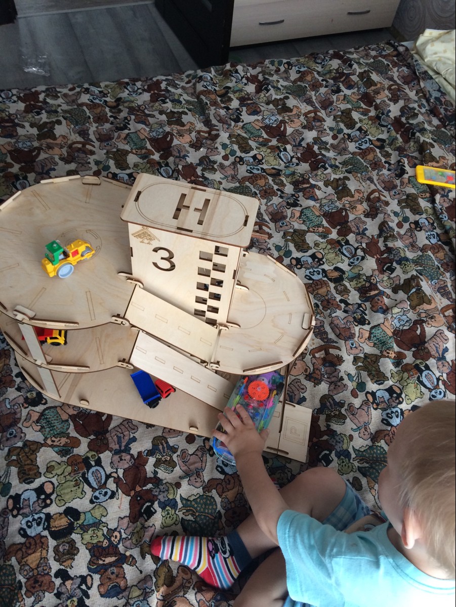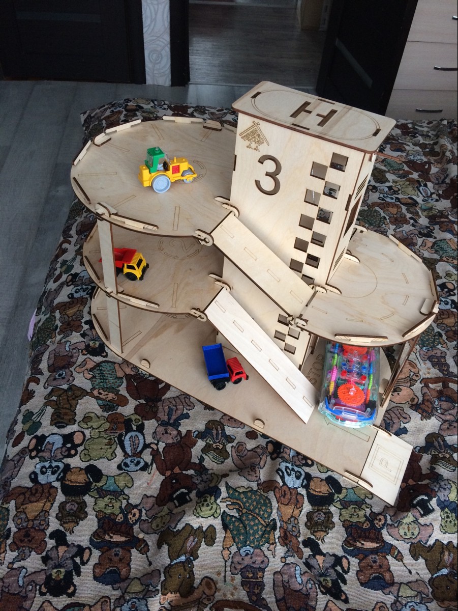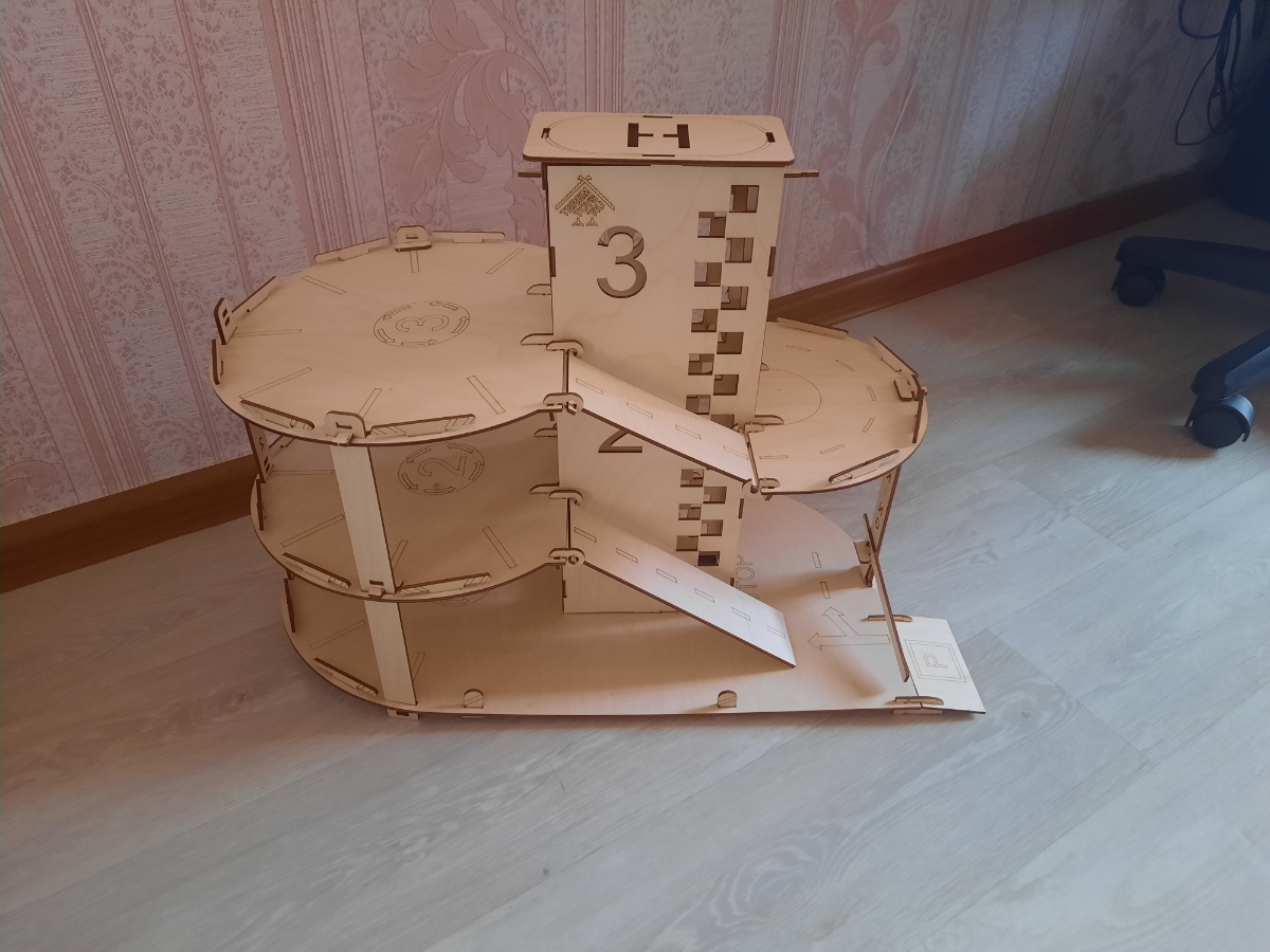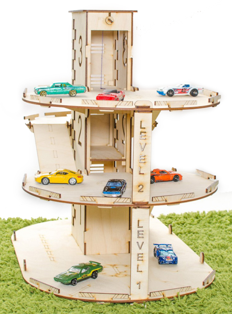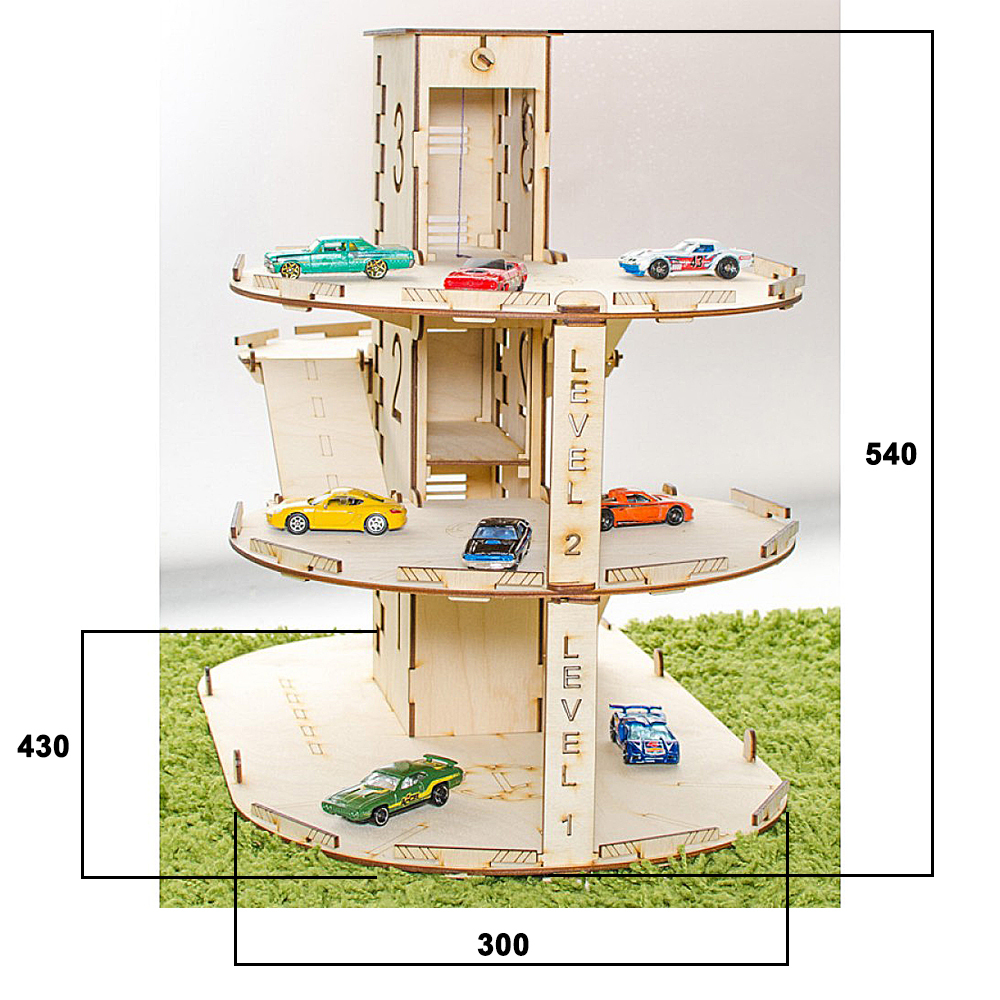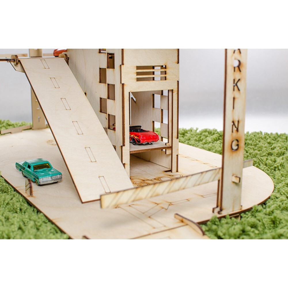 Деревянная парковка для машинок с лифтом "Автопаркинг" - детский конструктор