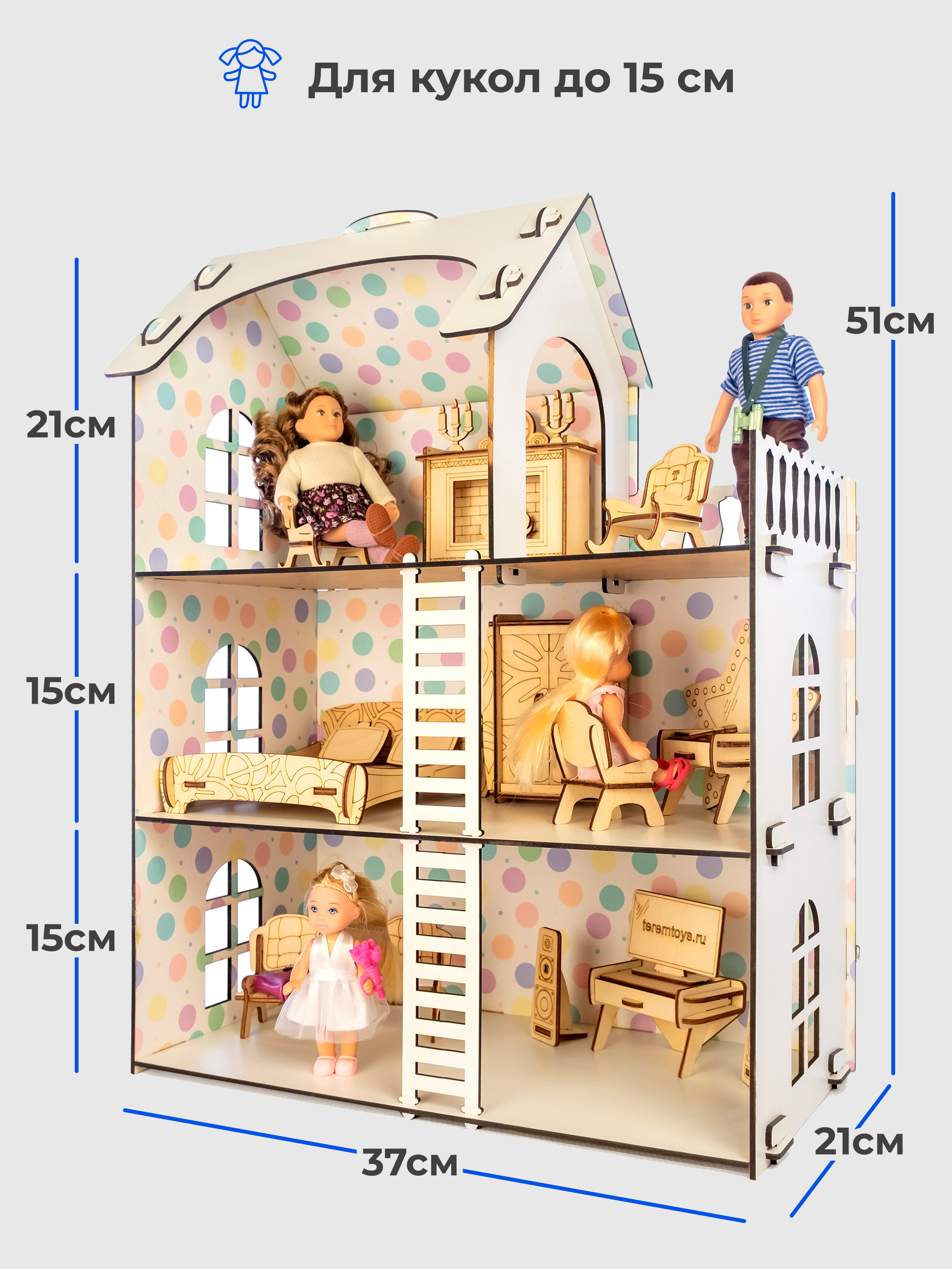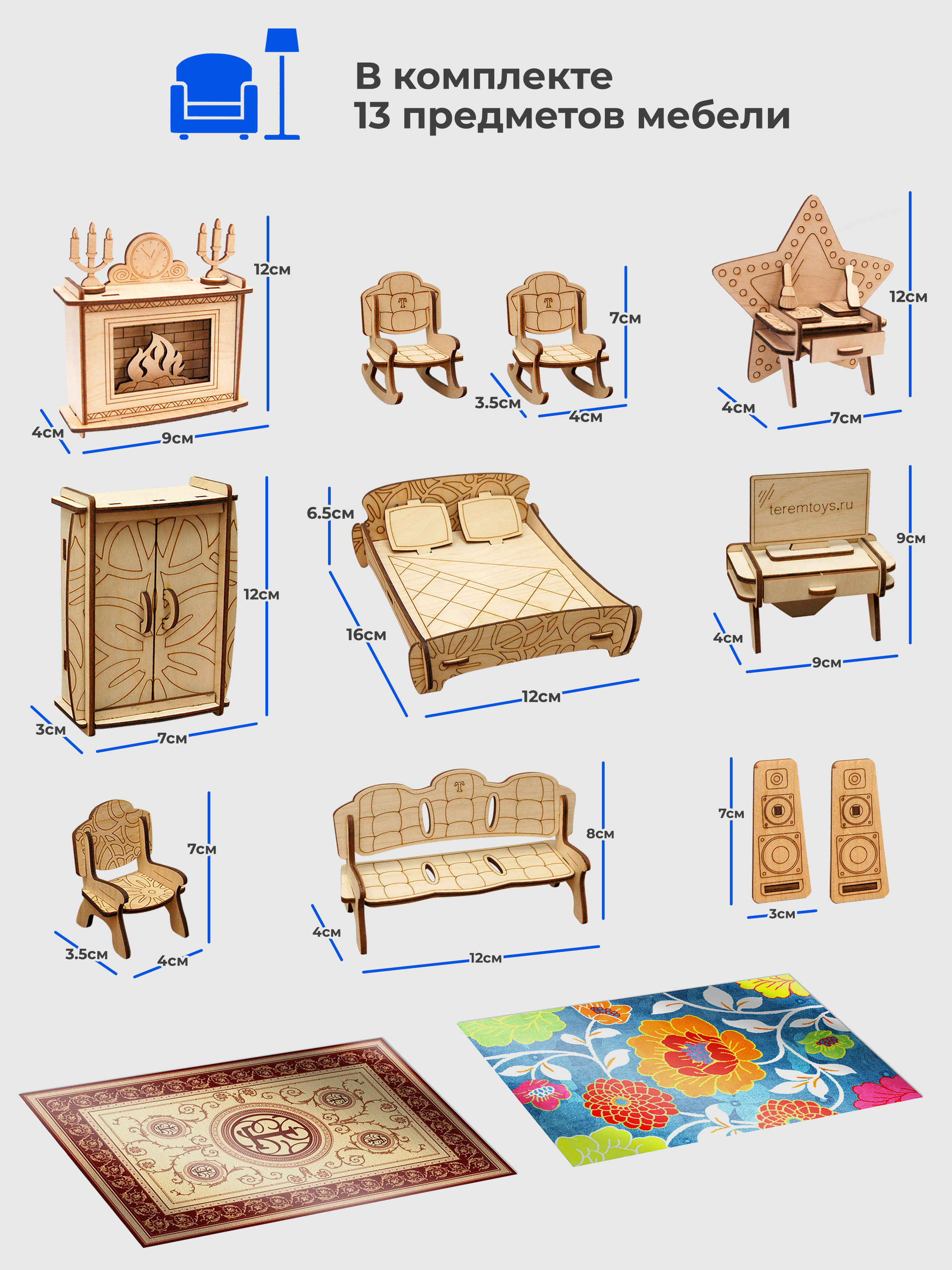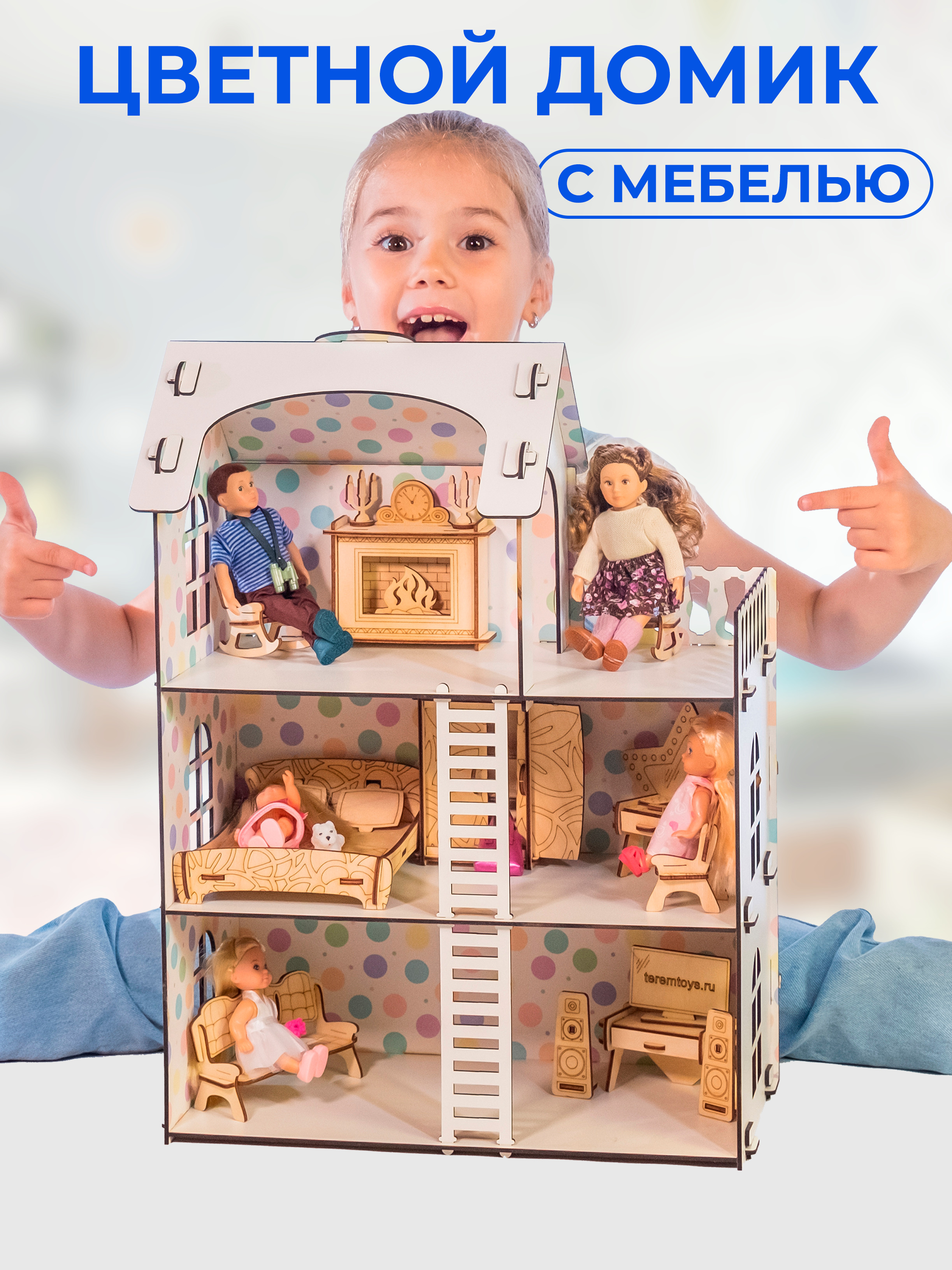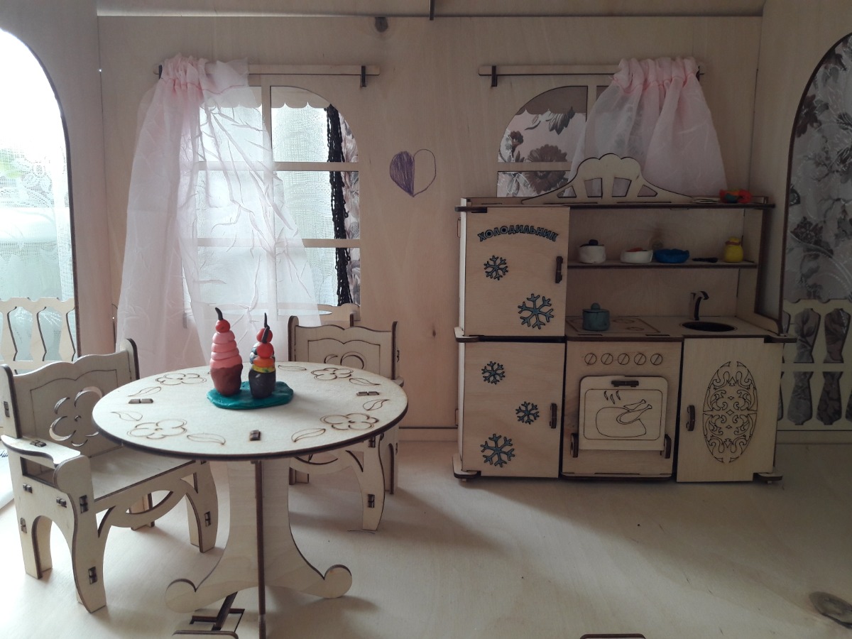 ТЕРЕМОК Сборная деревянная мебель для кукольного домика "Гостиная для кукол типа Барби"