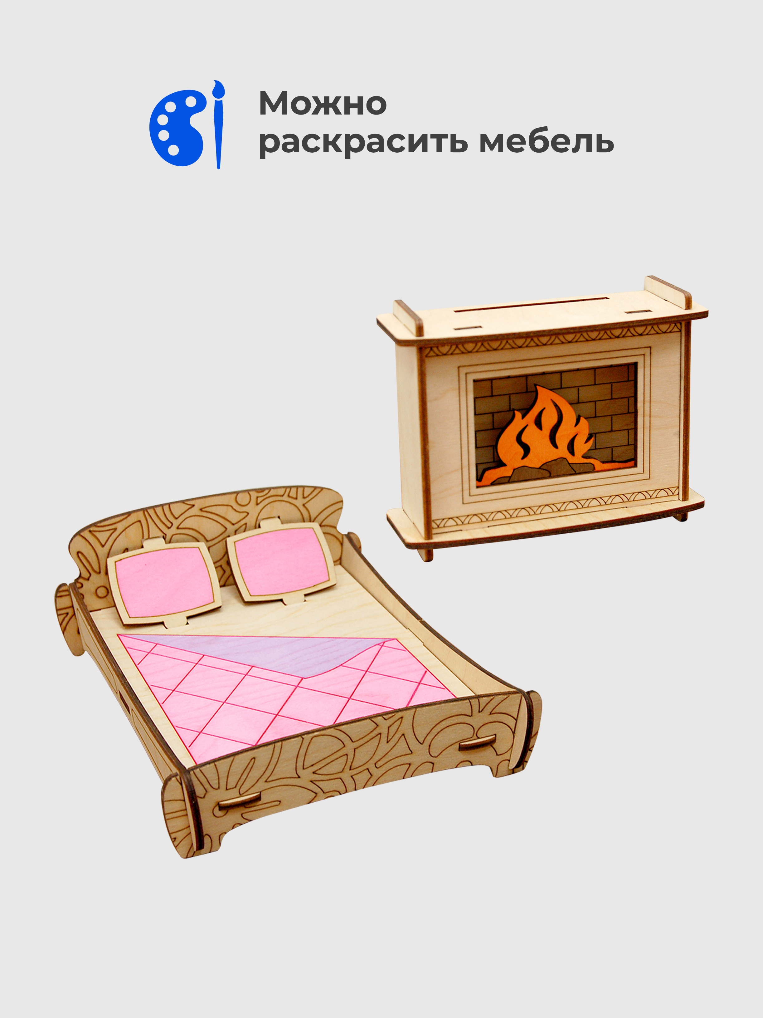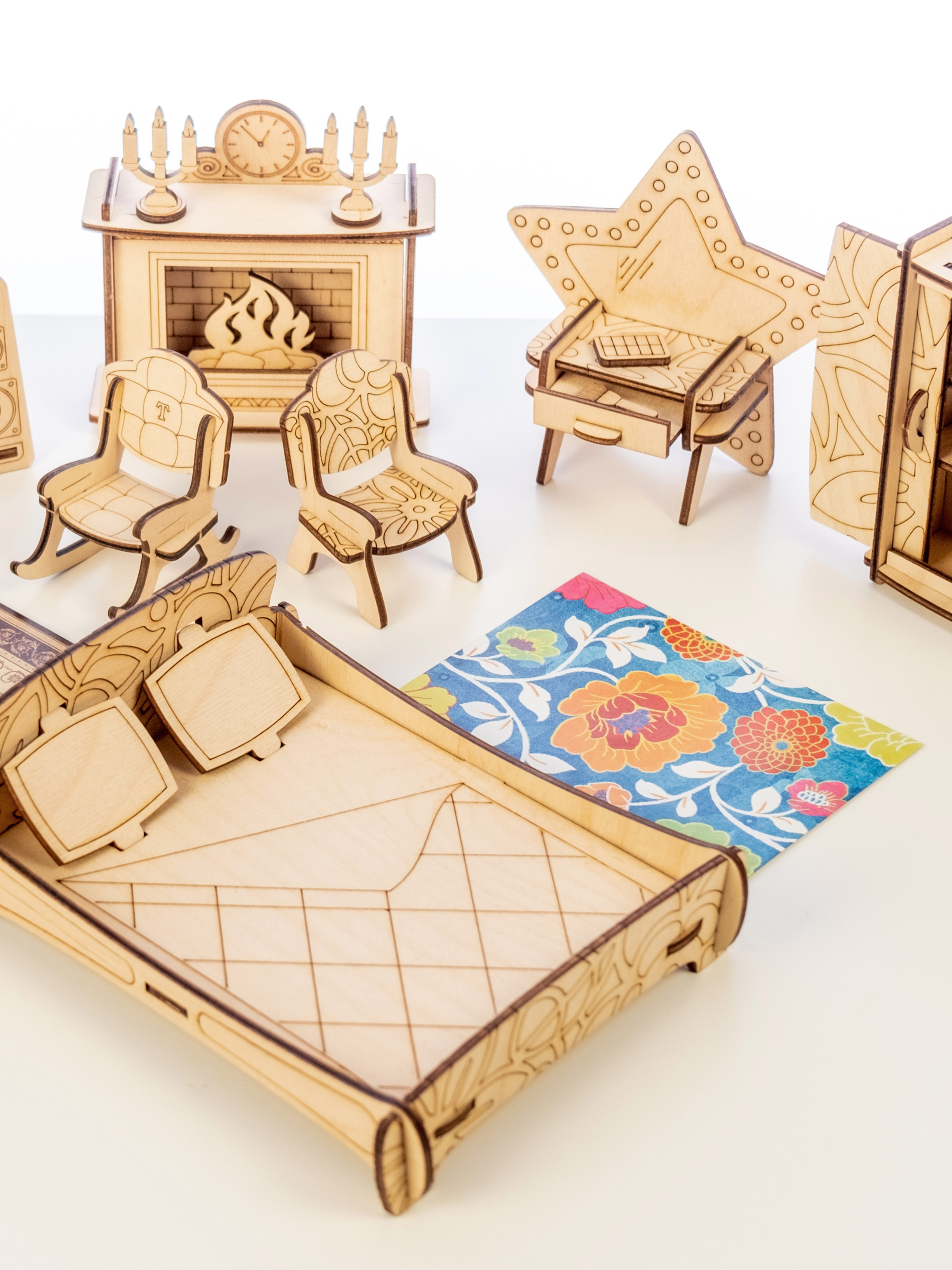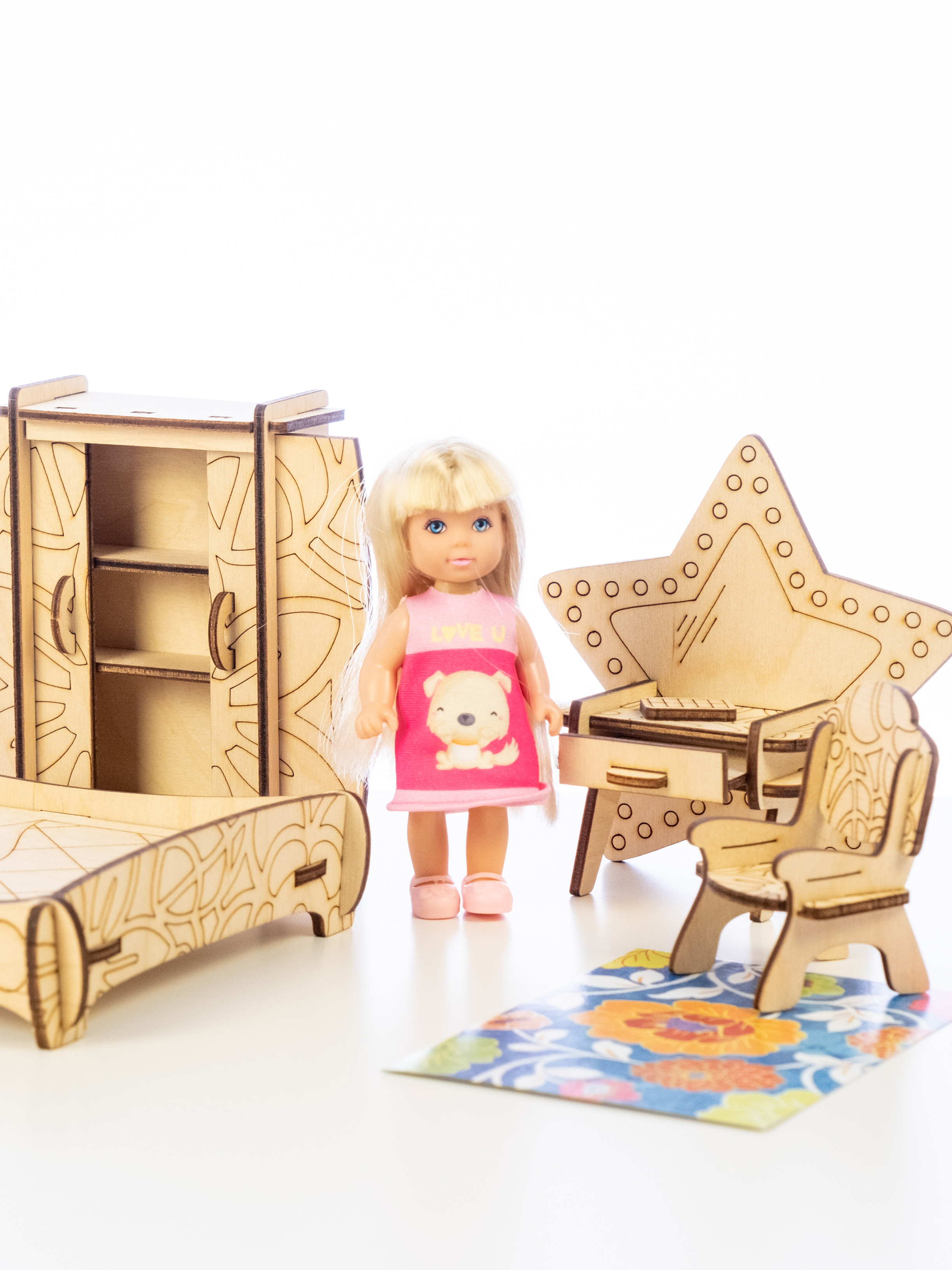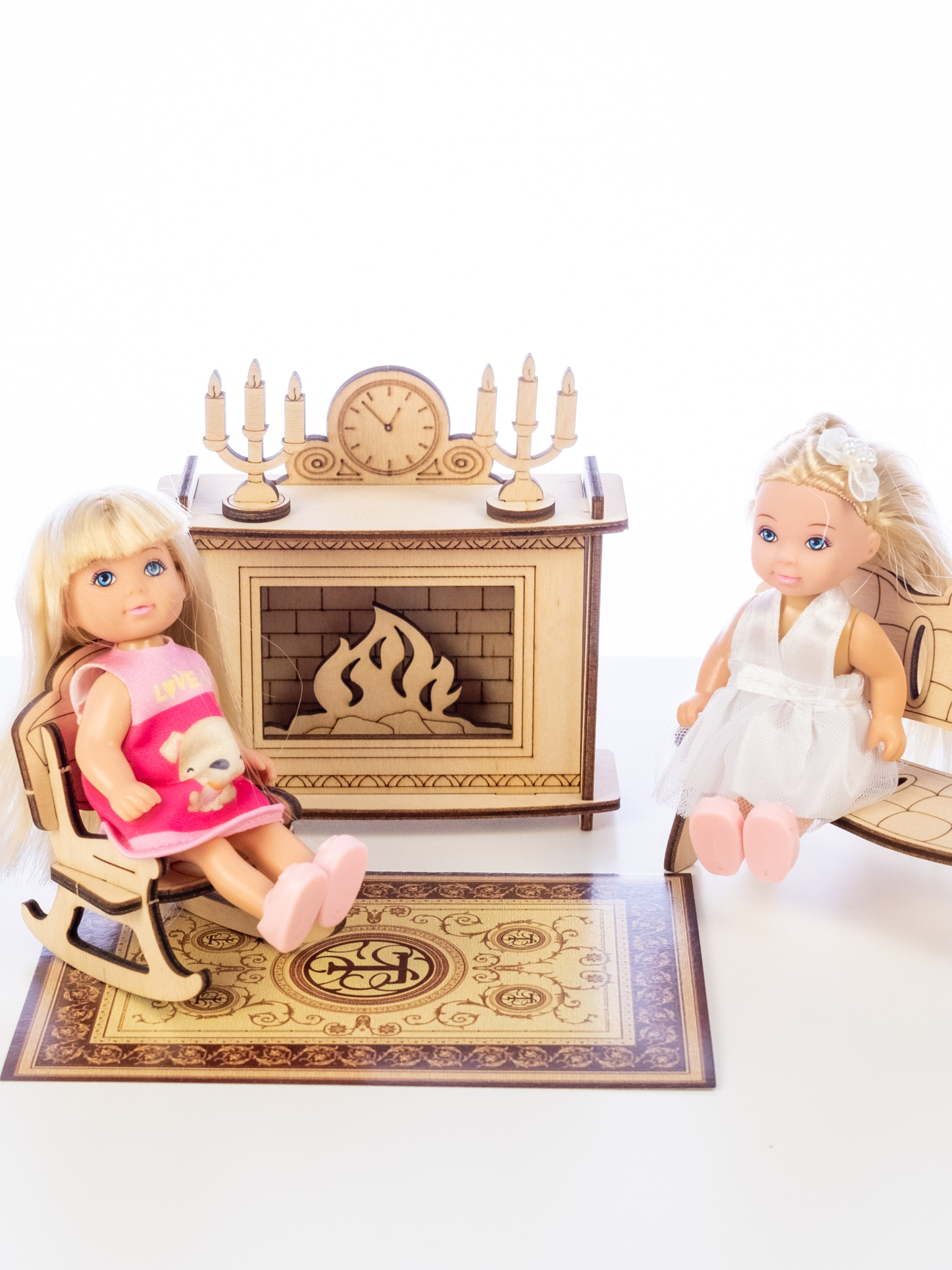 ТЕРЕМОК Сборная деревянная мебель для кукольного домика "Гостиная для кукол типа Барби"