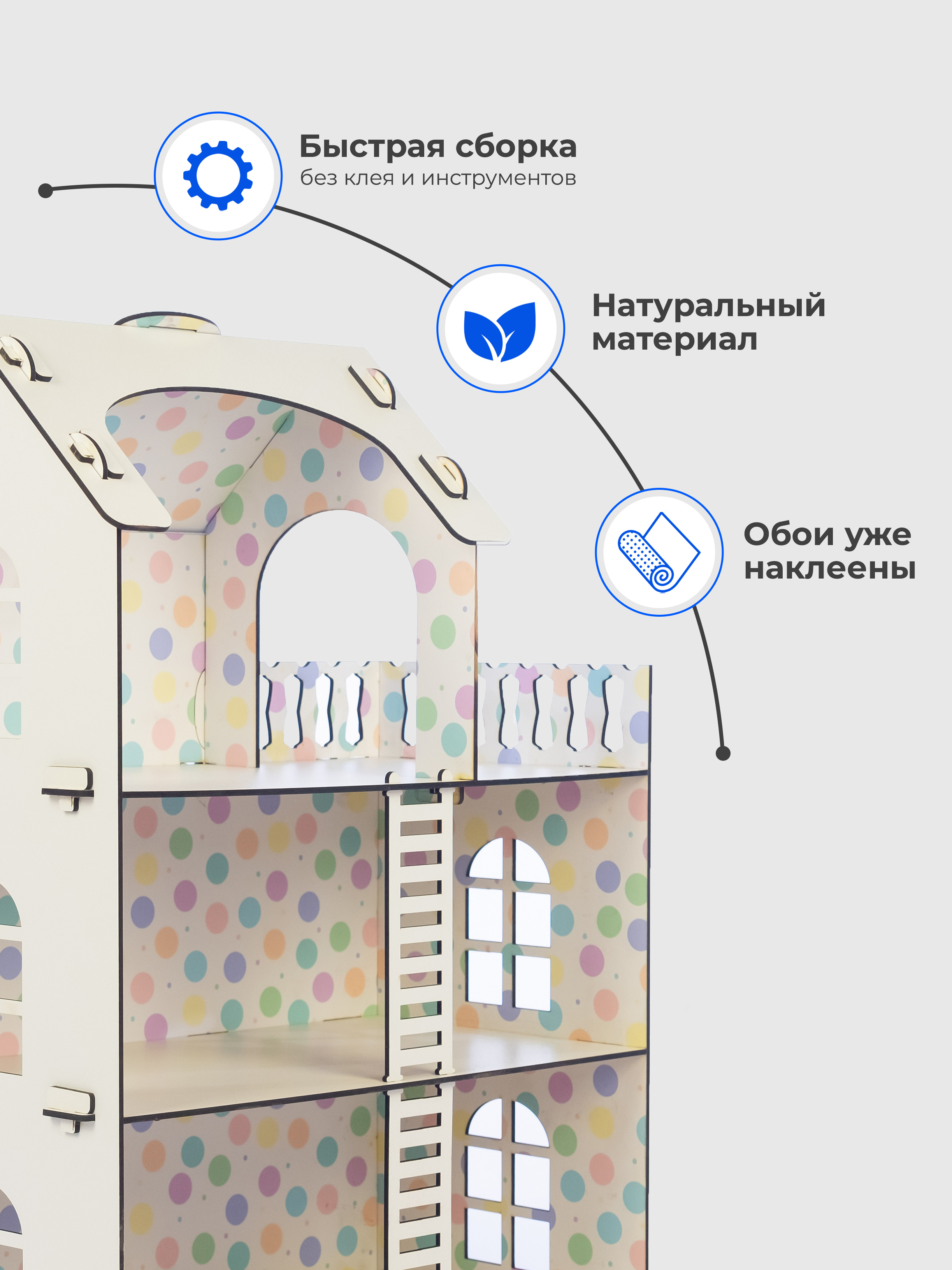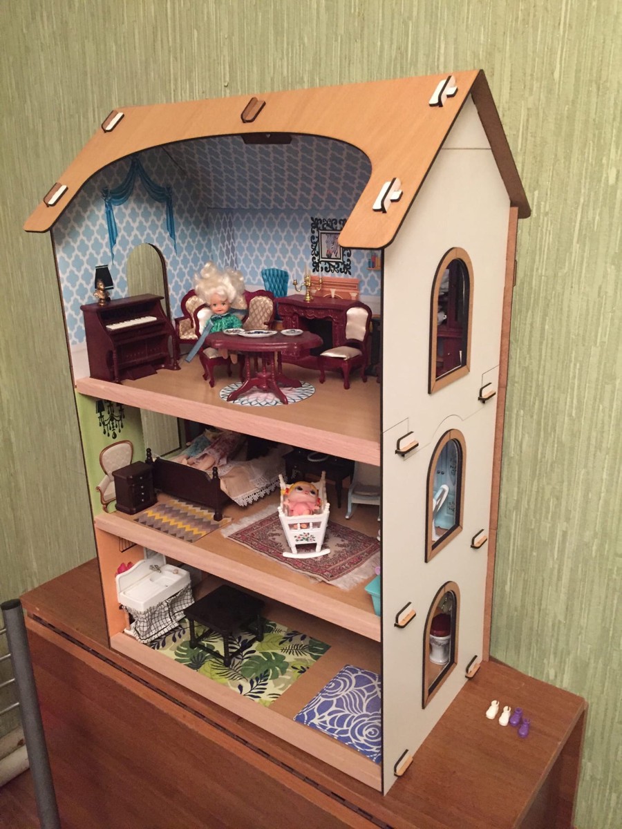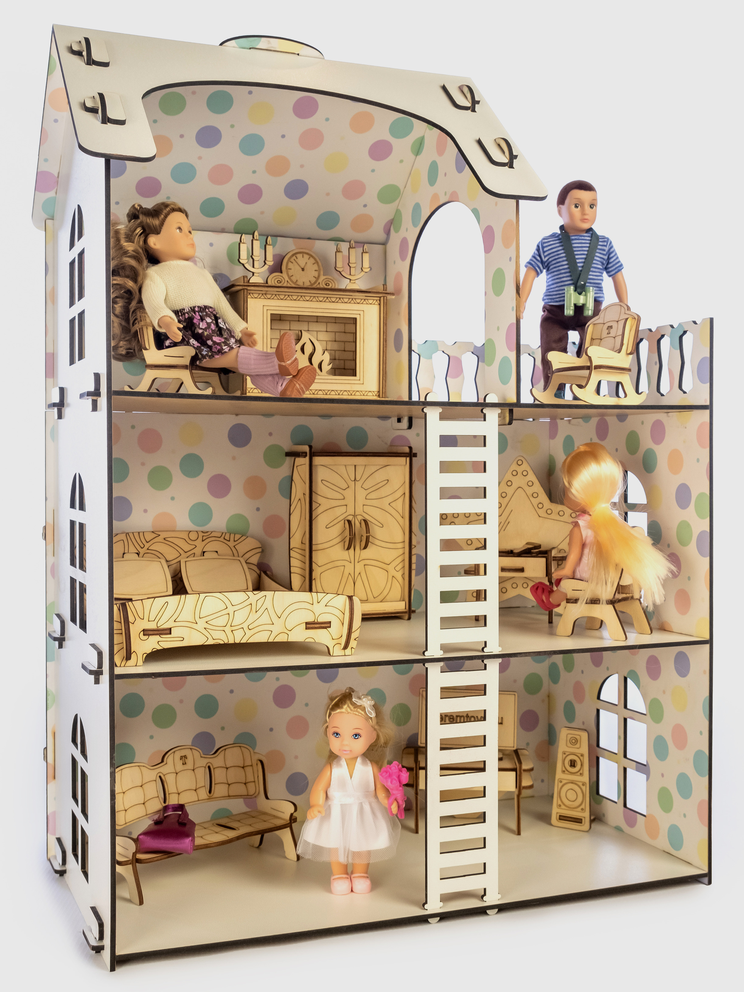 Деревянный кукольный домик для Барби