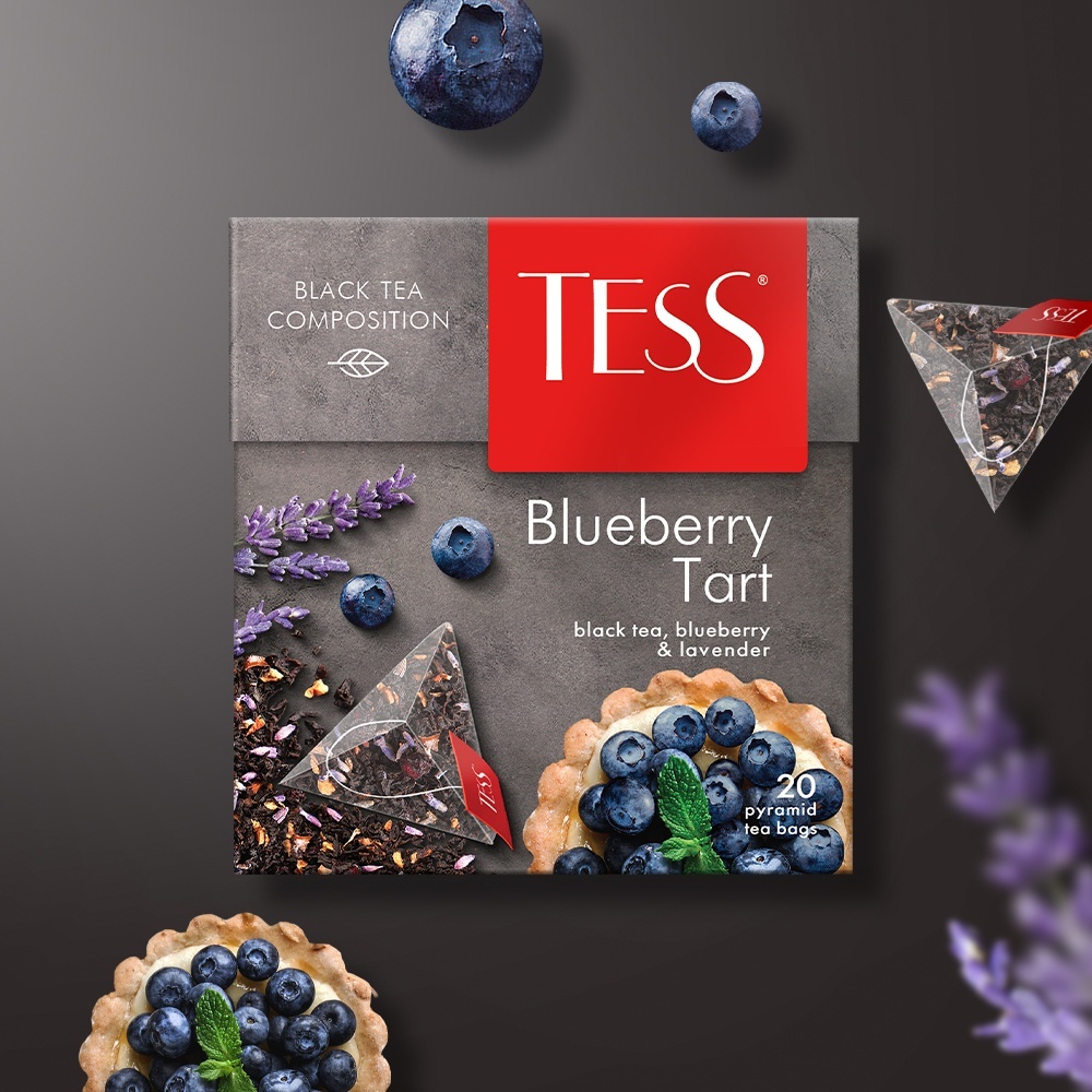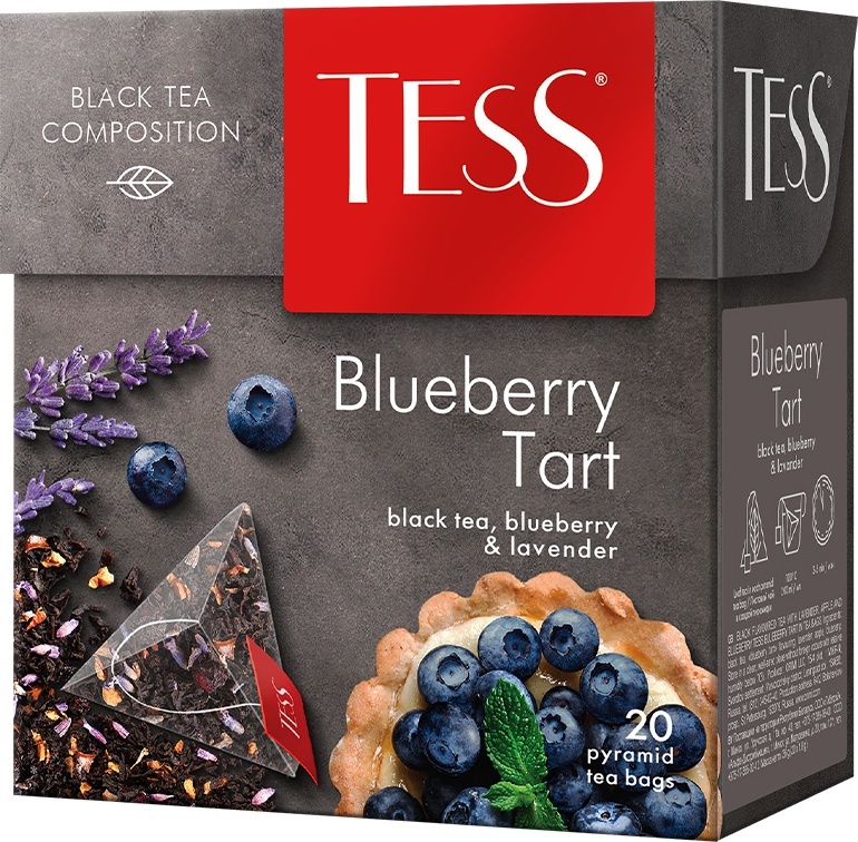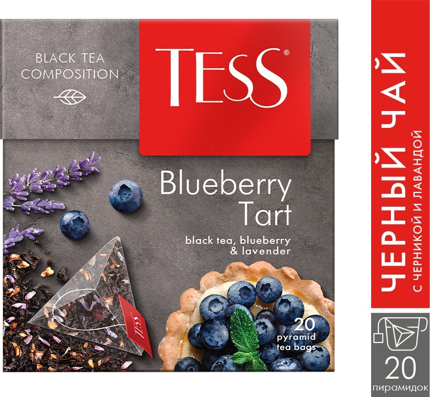 Чай в пирамидках Tess Blueberry Tart, черный, с черникой и лавандой, 20 шт