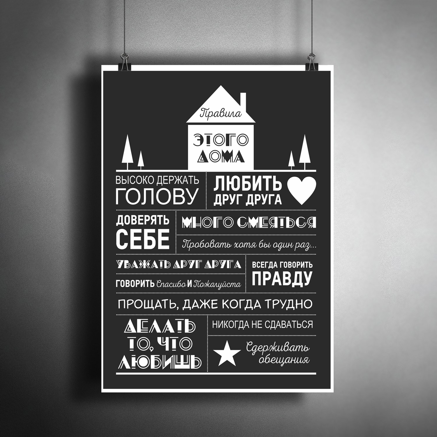 Постер плакат для интерьера "Правила дома на новоселье" в подарок / Декор дома A3 (297 x 420 мм)