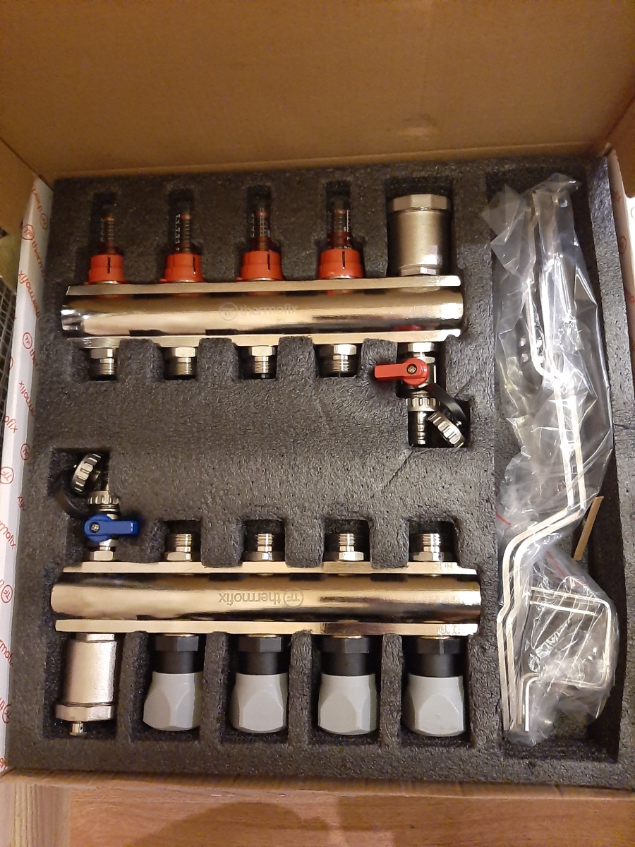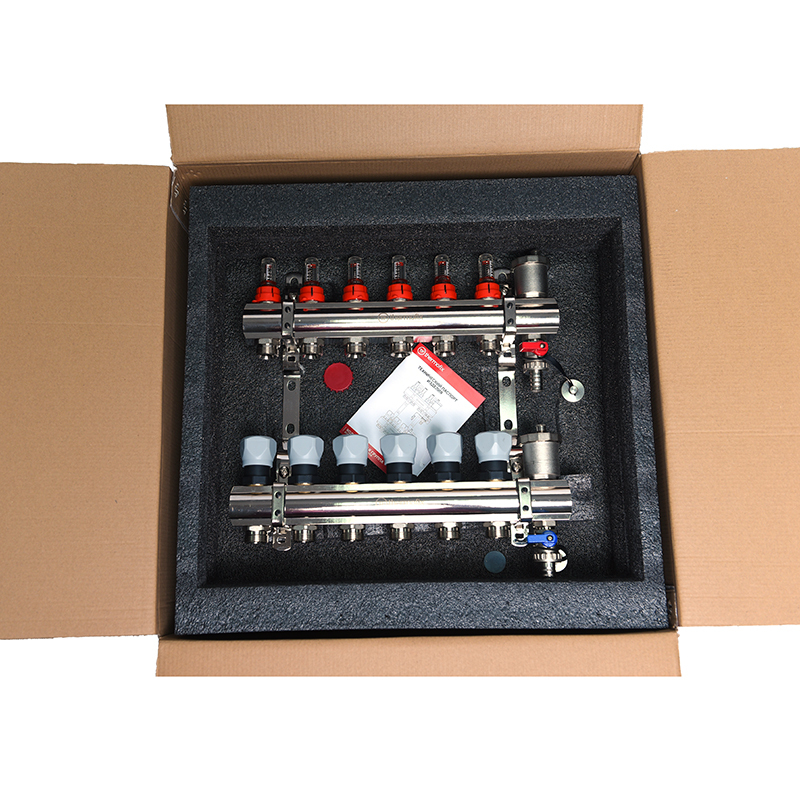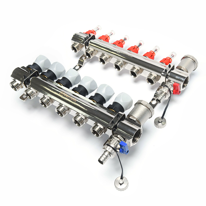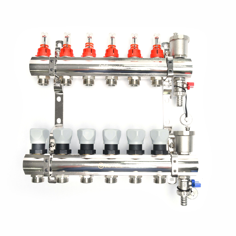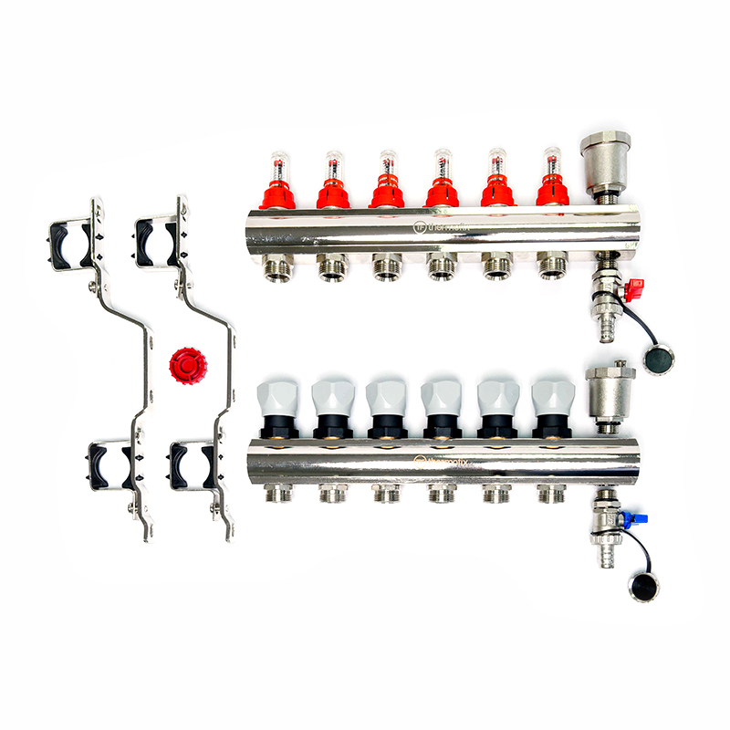 КОЛЛЕКТОРНЫЙ БЛОК ИЗ ЛАТУНИ С РАСХОДОМЕРАМИ 1"X3/4" 6 ВЫХОДА "Thermofix"