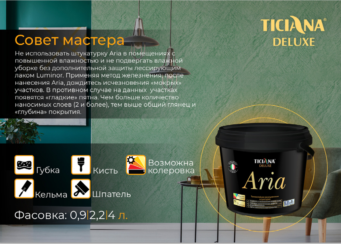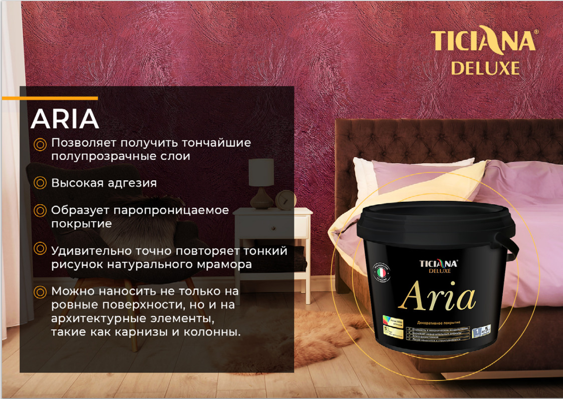 Декоративная штукатурка TICIANA DELUXE Aria - штукатурка тонкослойная венецианская 0.9 кг
