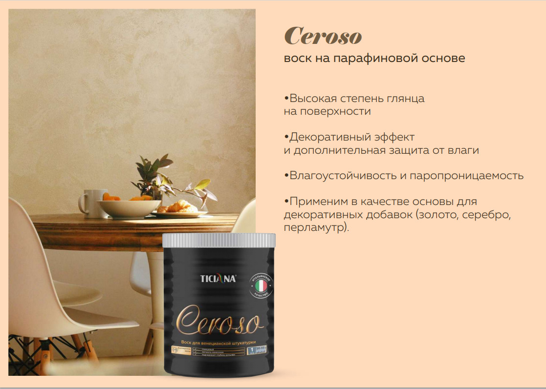Эмаль TICIANA DELUXE Воск для венецианской штукатурки Ceroso, 1 л, 1 кг
