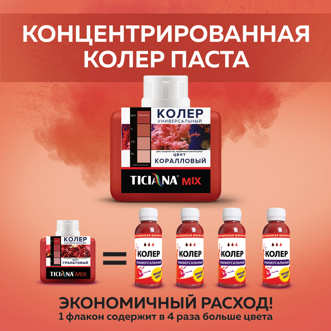 Колер микс универсальный TICIANA ( колер для краски, штукатурки, колорант, паста колеровочная, колер-паста 4300003615; Цвет: Коралловый; Фасовка 80 мл)