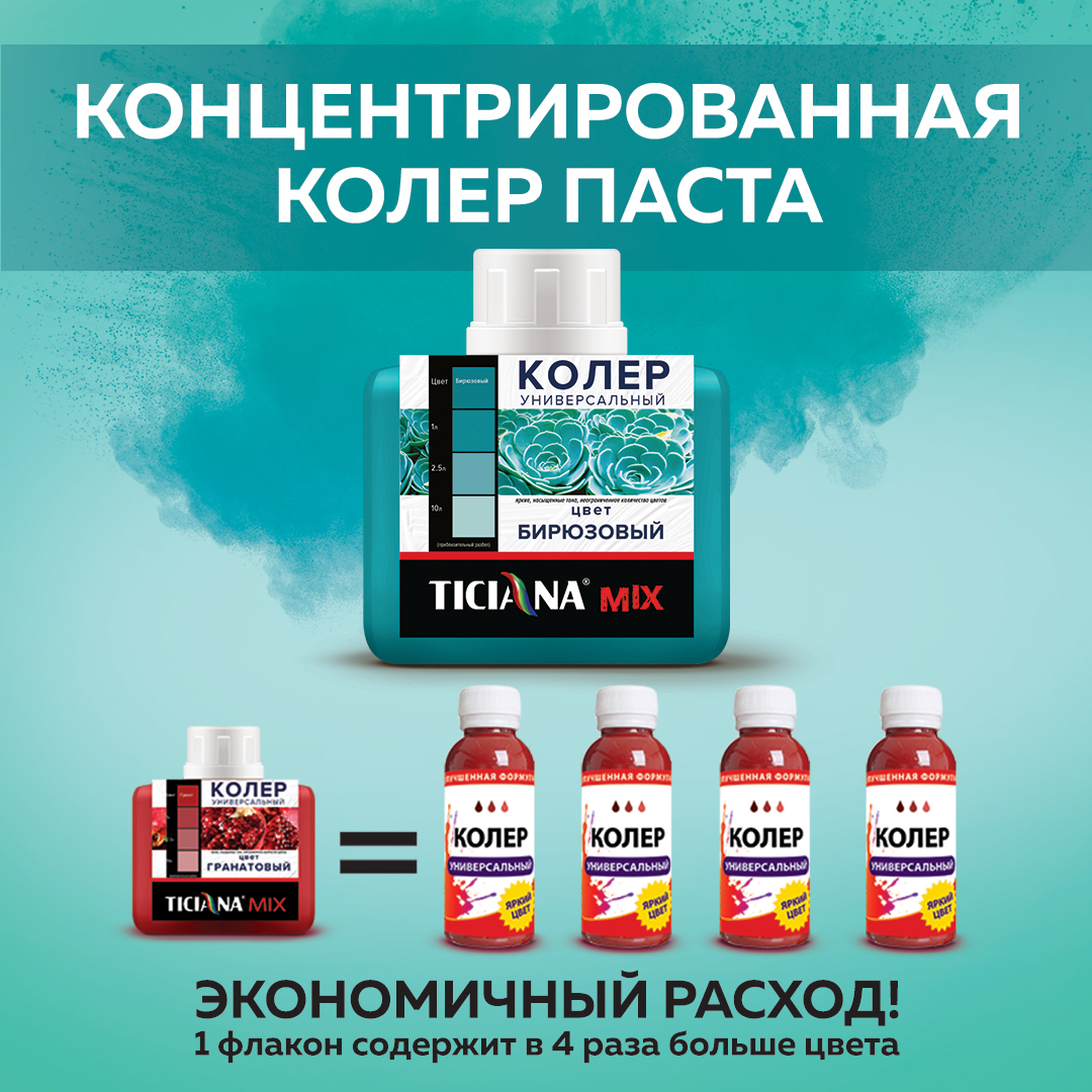 Колер микс универсальный TICIANA ( колер для краски, штукатурки, колорант, паста колеровочная, колер-паста 4300003608; Цвет: Бирюзовый; Фасовка 80 мл)