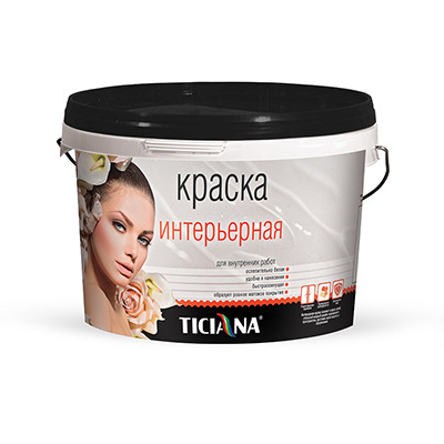 Краска TICIANA водно-дисперсионная база "А" интерьерная, Матовое покрытие, 4.5 л, белый