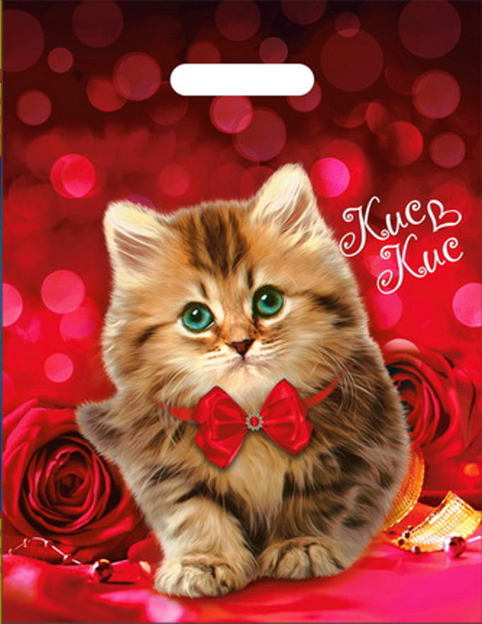 Пакет подарочный тонкий 30*40 с прорубной ручкой Кис-кис, 25 шт