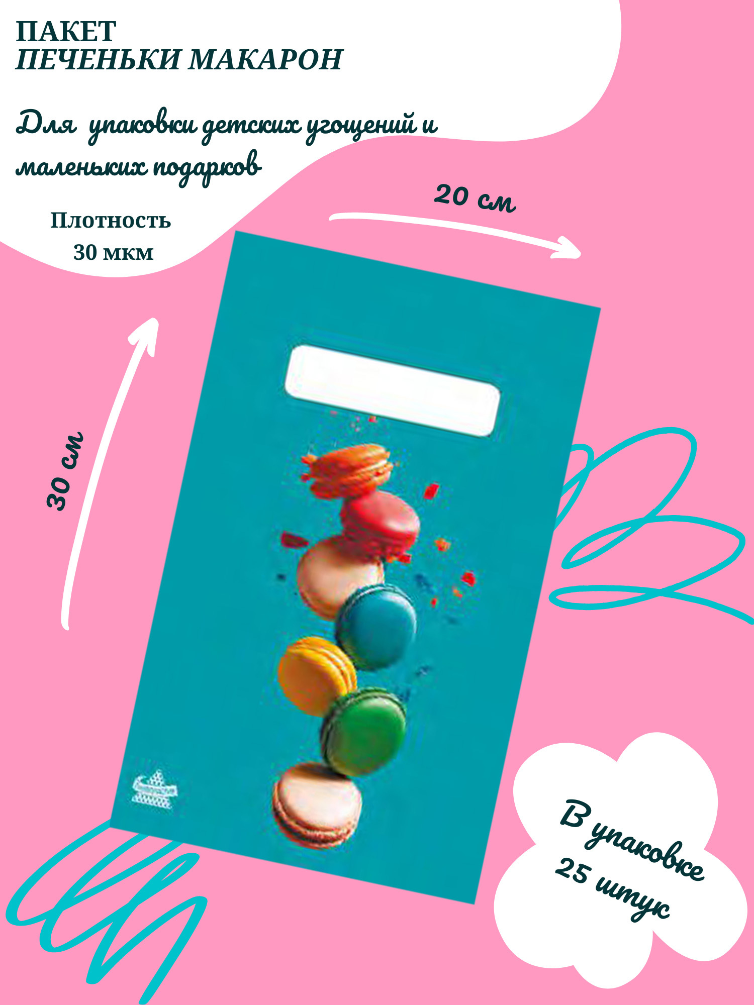 Пакет подарочный 20*30см с прорубной ручкой Печенье Макарон, 25 шт