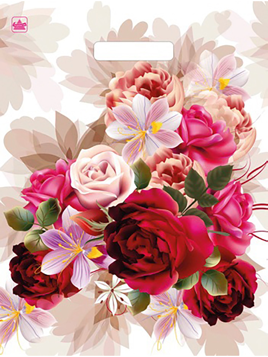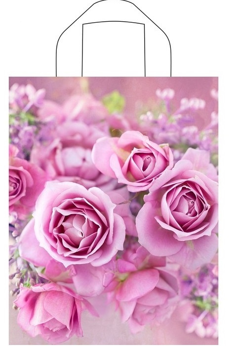 Пакет подарочный Нежные розы с петлевой ручкой, 35 х 28 см, 55 мкм 25 штук