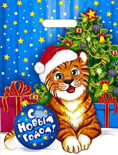 Пакет подарочный Тигруля, полиэтиленовый с вырубной ручкой, 31х40 см, 50 шт. 60 мкм.
