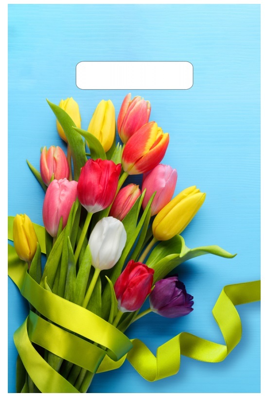 Пакет подарочный 20*30 с прорубной ручкой Тюльпаны на голубом, 100 шт