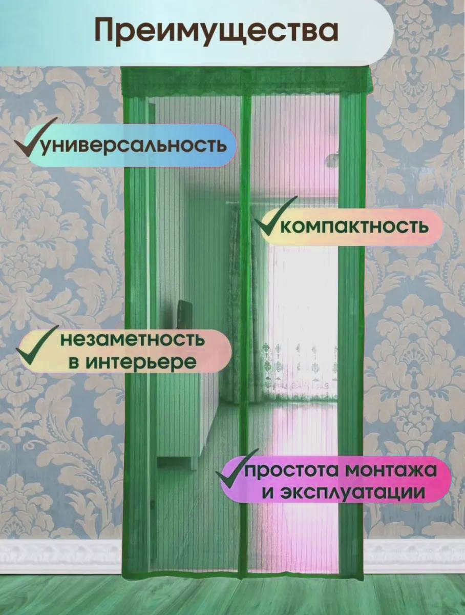 Дверная москитная (антимоскитная) сетка на магнитах, 110х210 см., салатовый