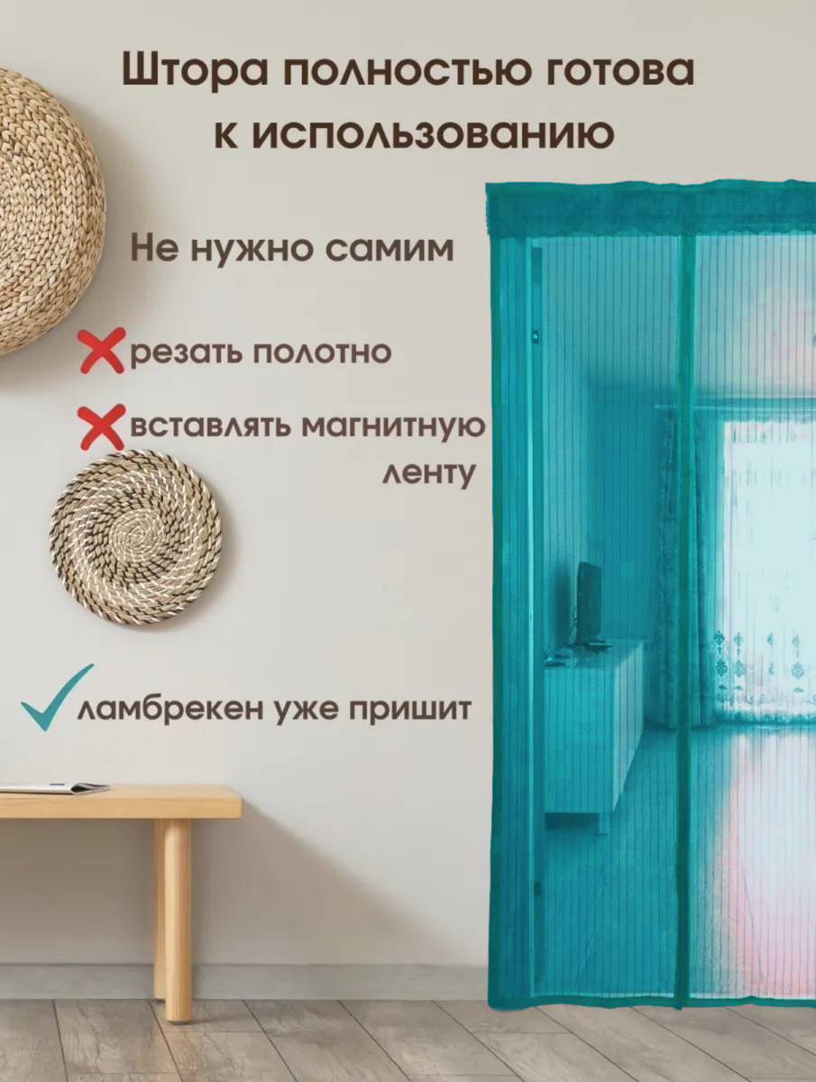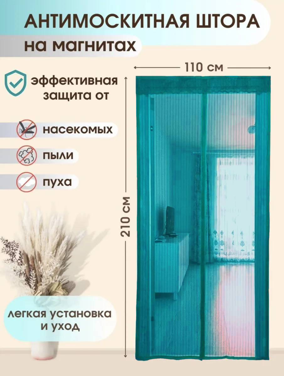 Дверная москитная (антимоскитная) сетка на магнитах, 110х210 см., голубой