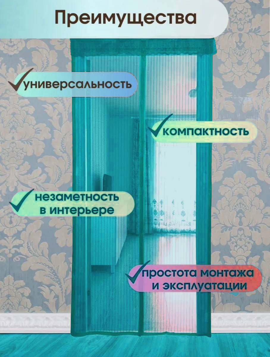 Дверная москитная (антимоскитная) сетка на магнитах, 110х210 см., салатовый
