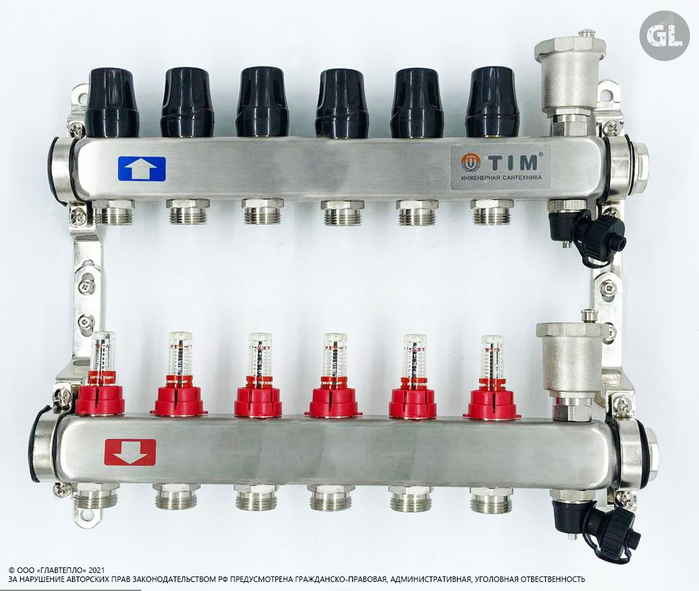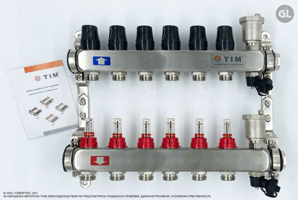 Коллектор 3 контура, из нержавеющей стали для отопления, TIM