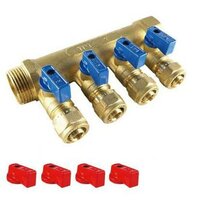 Коллектор с кранами, 4 выхода горячая вода, ф 20х1, Tim