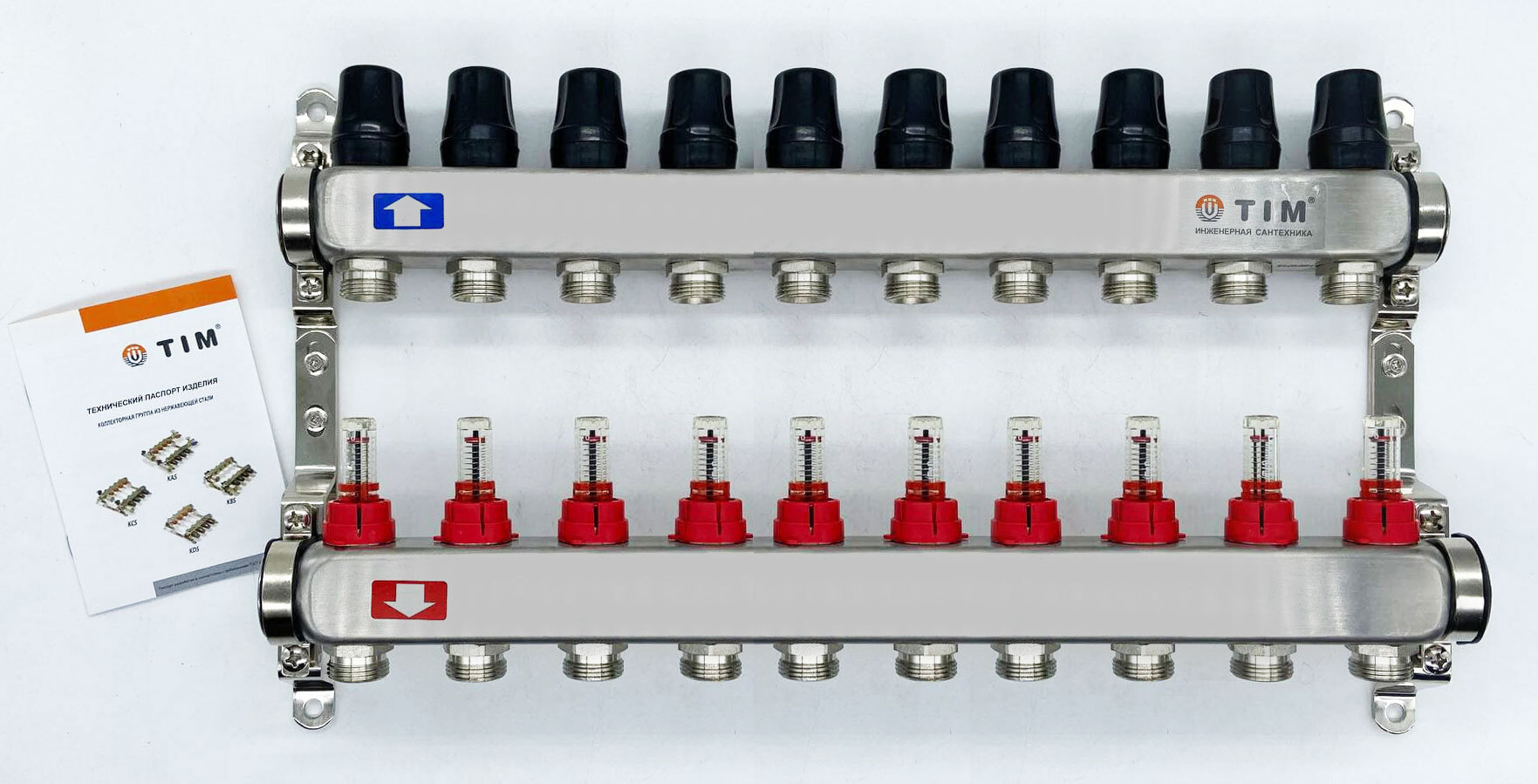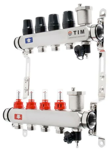 Коллекторная группа с расходомерами 1", 5 хода, нерж. с кранами (КВАДРАТ) KAS5005