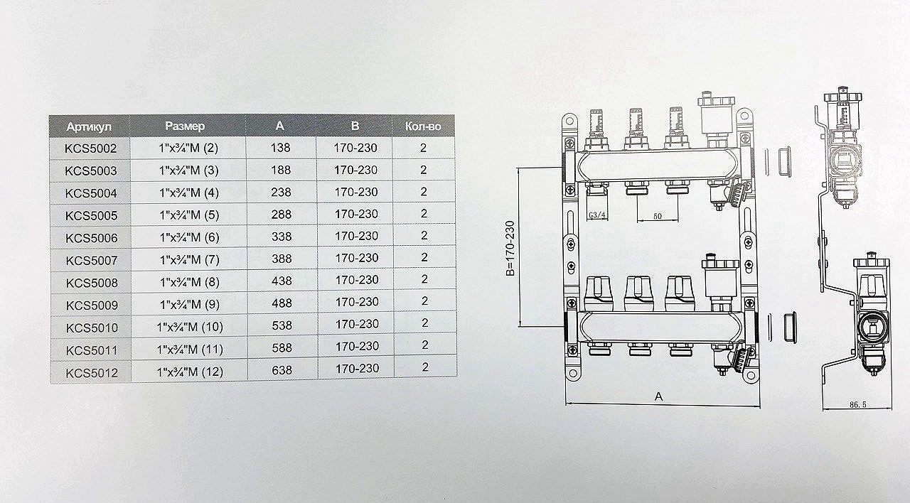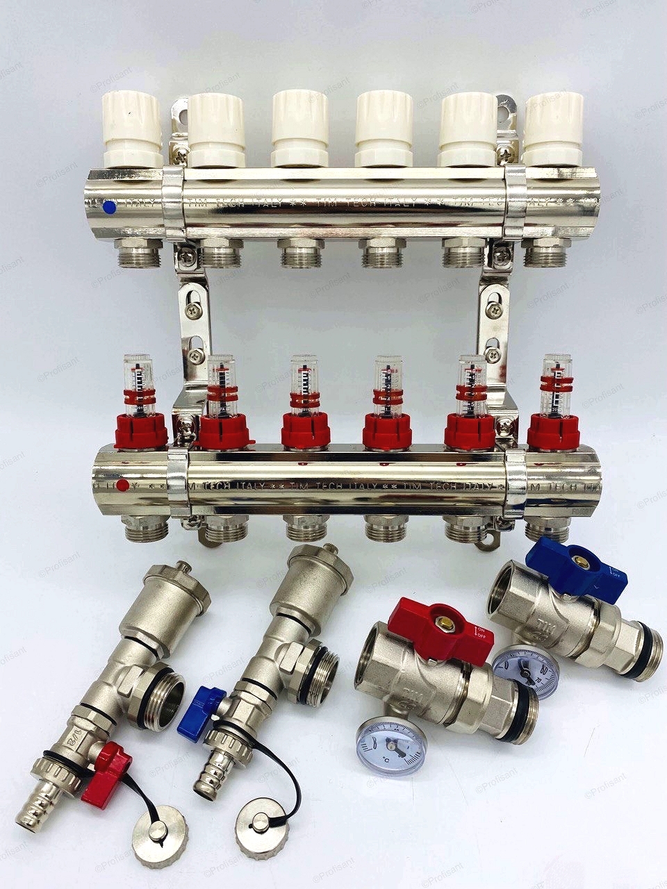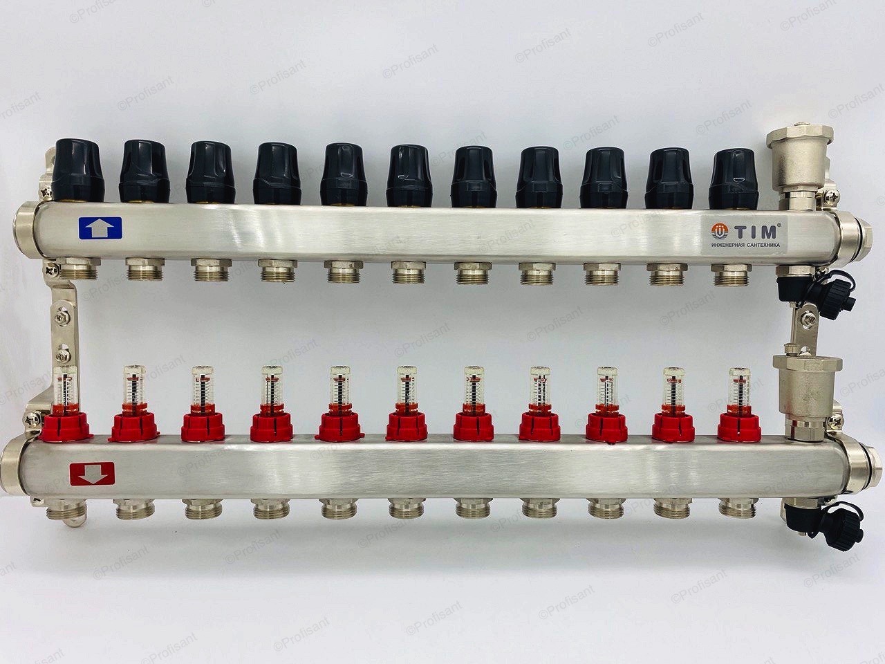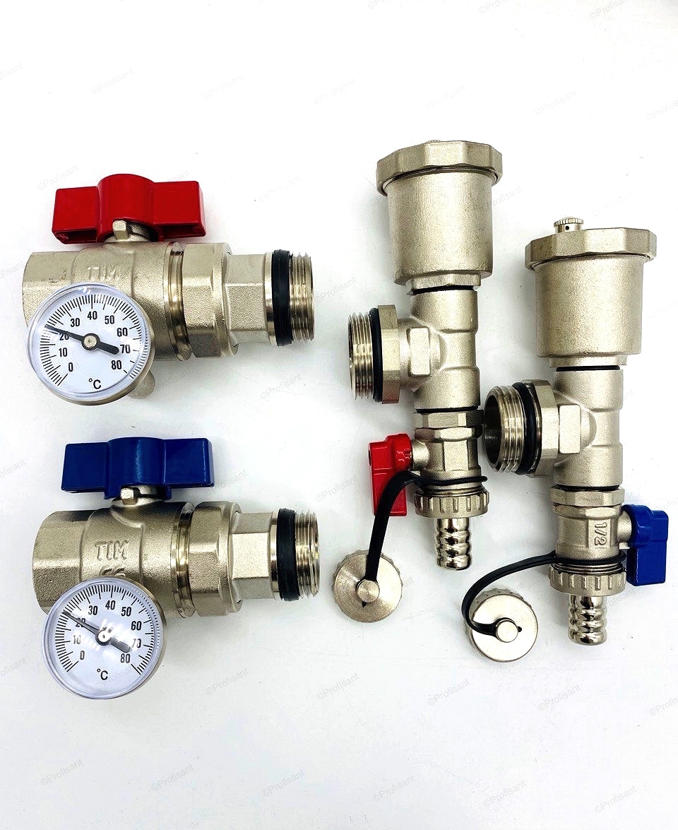 Комплект прямых шаровых кранов с термометром Tim M308-4
