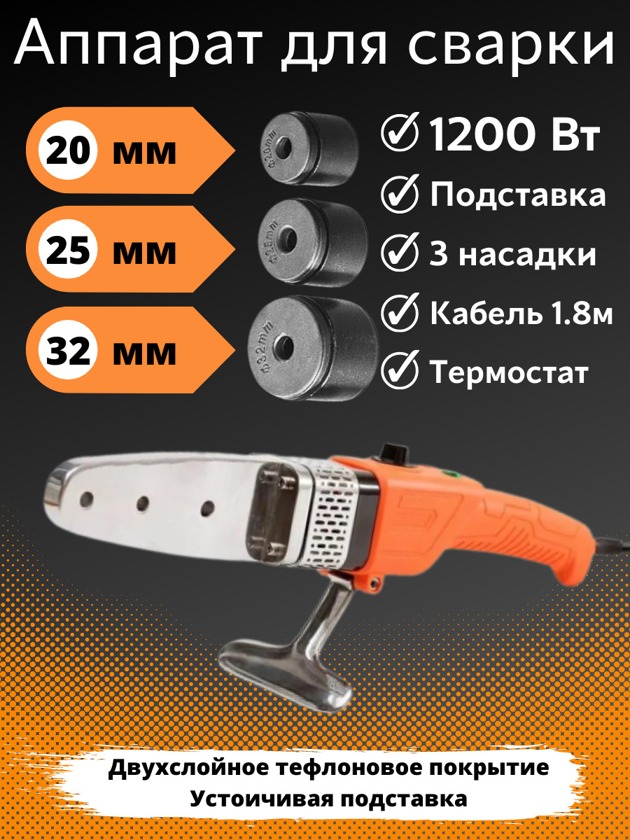 TIM WM-20 Паяльник для полипропиленовых труб, 1200 Вт (3 насадки)