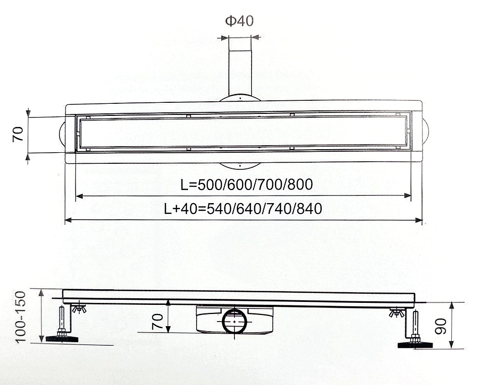 Трап-лоток 70 мм х 800 мм из нержавеющей стали с фланцем свободного вращения ZEISSLER BAD538002