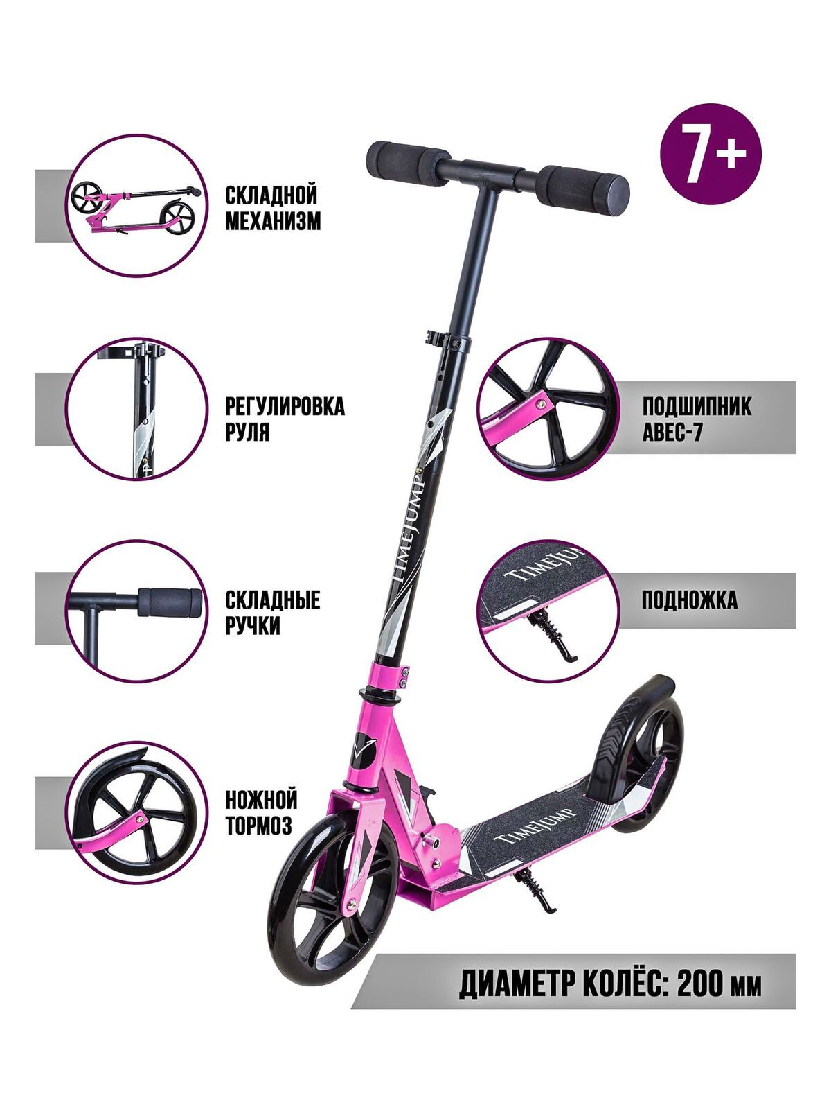 Самокат TimeJump YX-S07200FUC-22SS, фуксия, серый мм