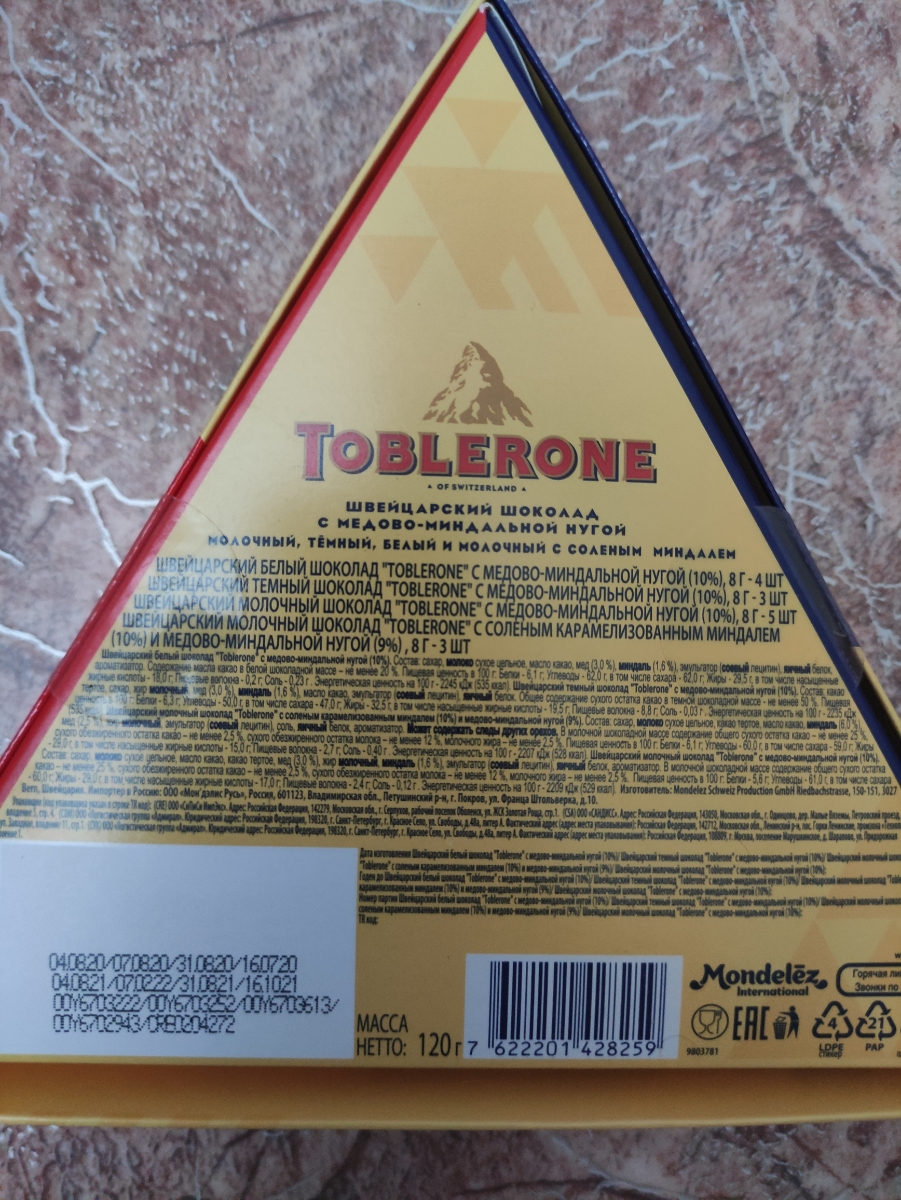Молочный шоколад Тоблерон Tiny медово ореховый вкус миндаль и нуга 4 кг