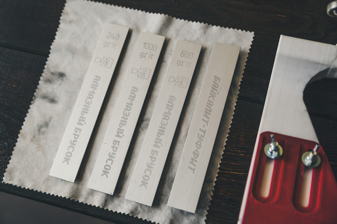 Набор для заточки ЖУК ПРЕМИУМ / 4 держателя / 6 абразивных брусков / угломер / подарочный ящик