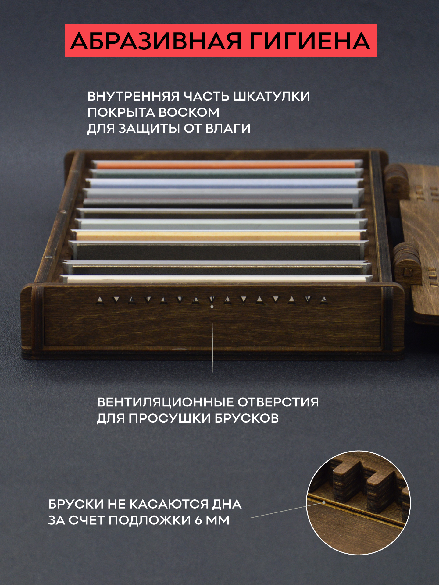 Деревянная шкатулка для хранения 9-ти заточных брусков