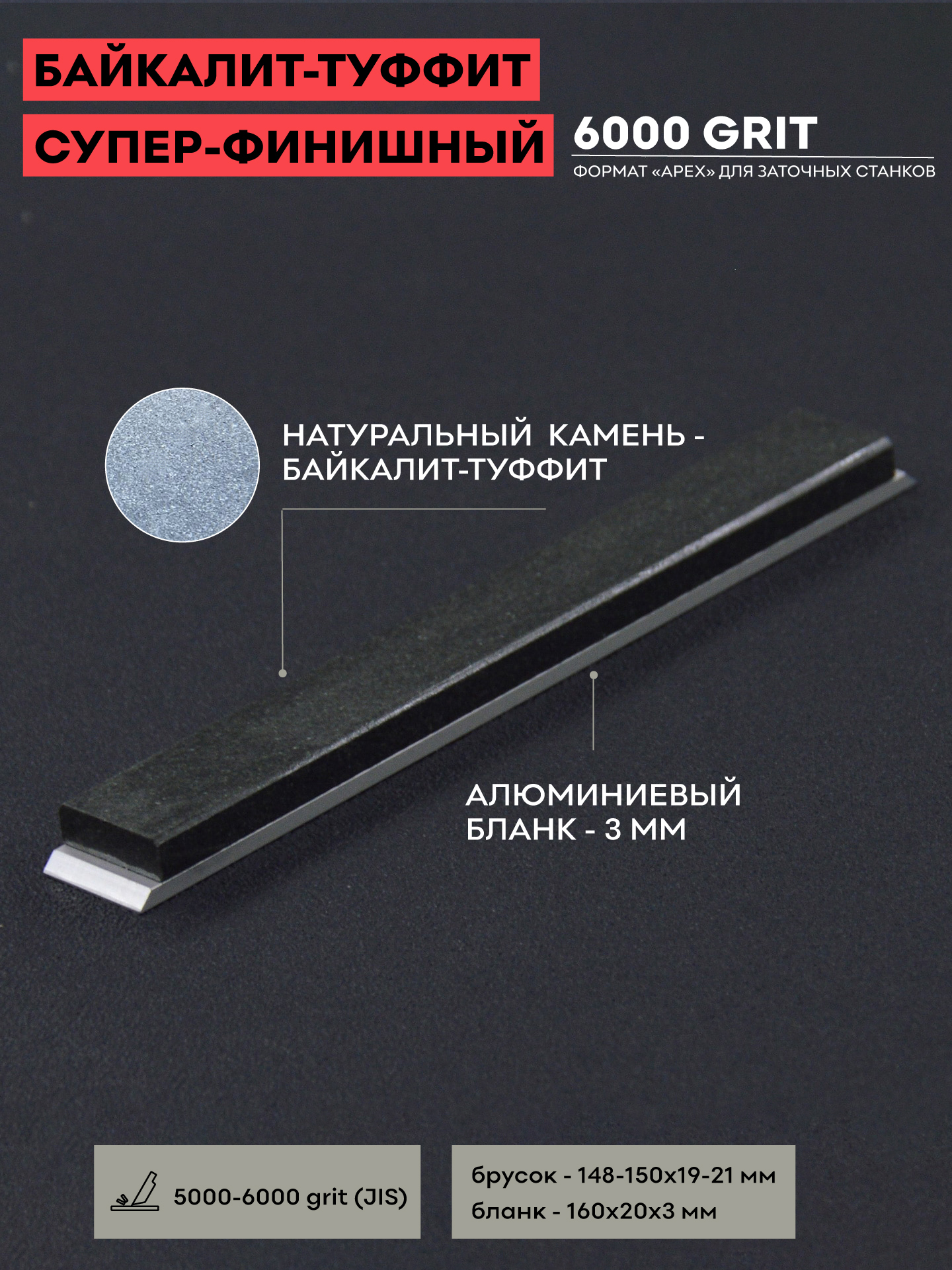 Натуральный точильный камень Байкалит-Туффит / 6000 грит / 20 мм / Apex