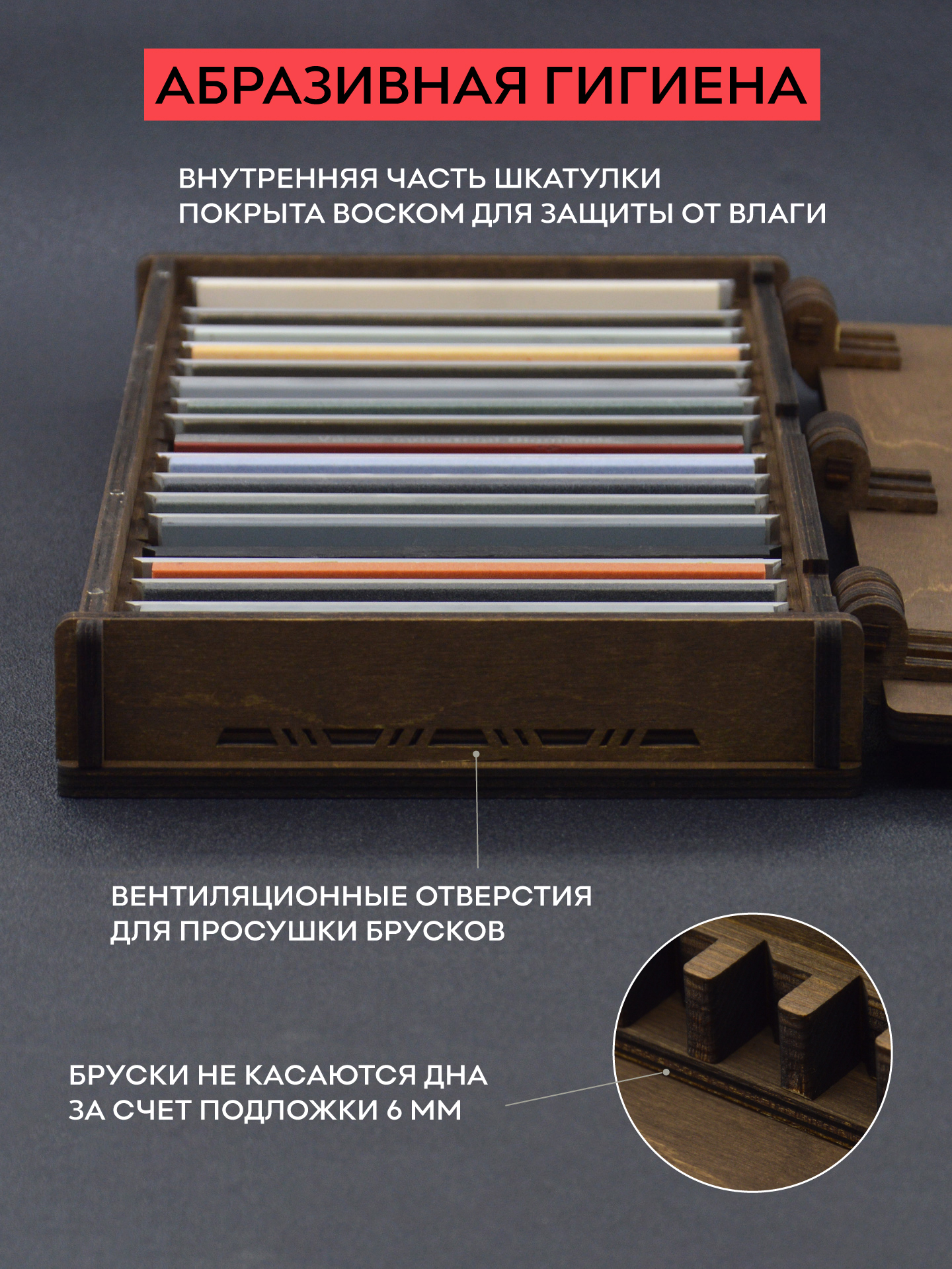 Деревянная шкатулка для хранения 9-ти заточных брусков