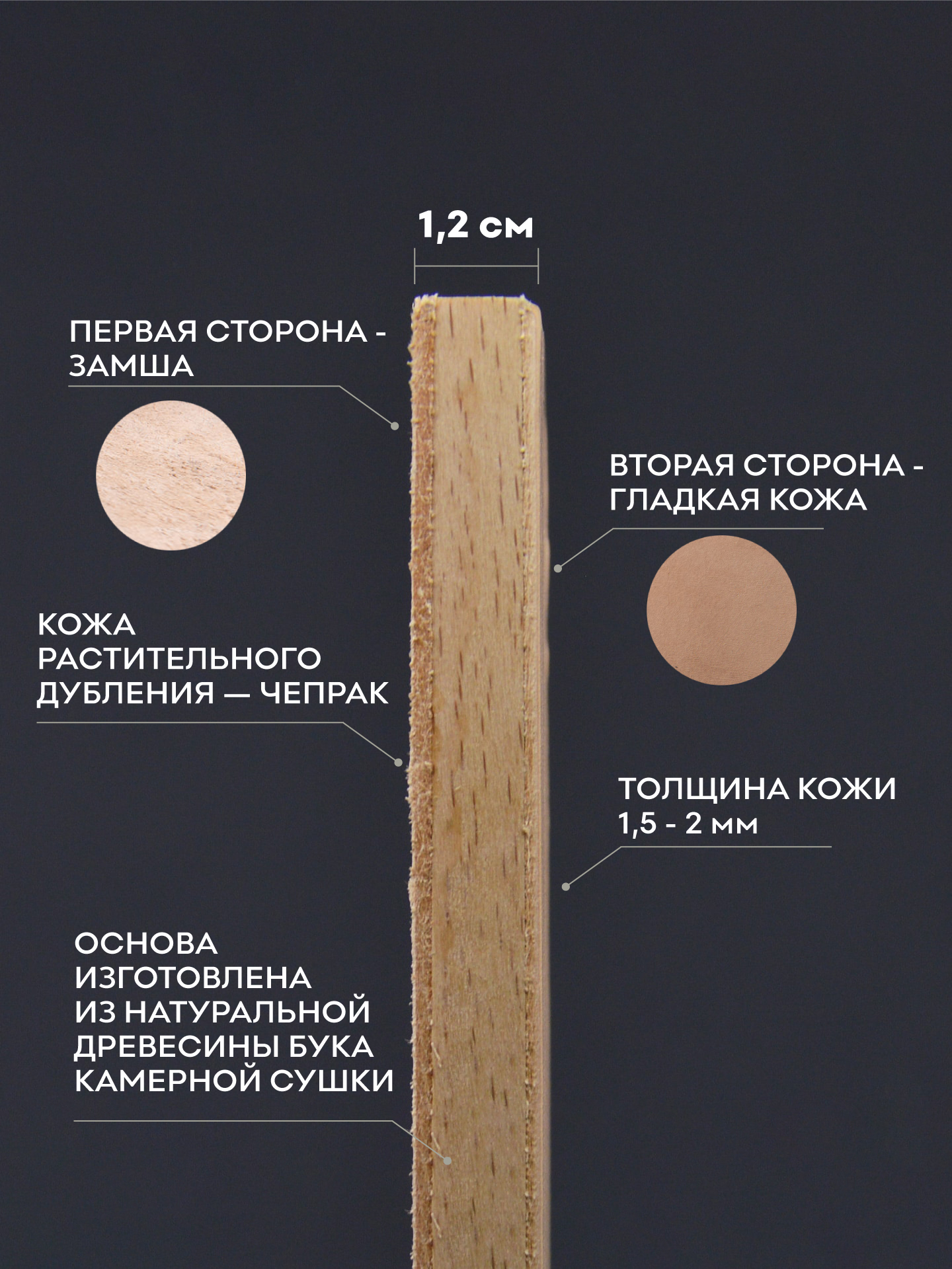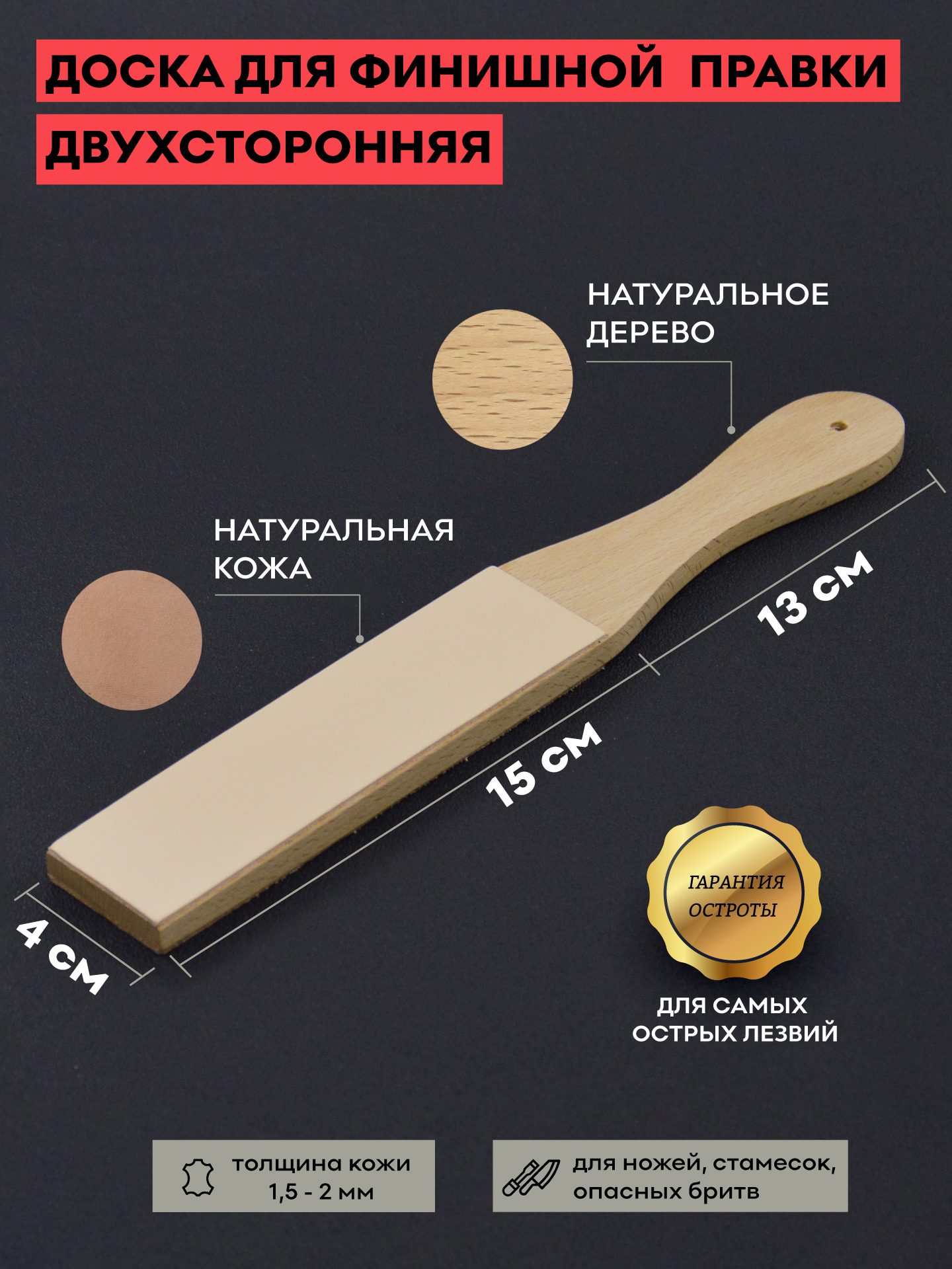 Доска для финишной правки ножей и бритв / 150*40 / натуральная кожа чепрак 3 мм / удобная рукоять