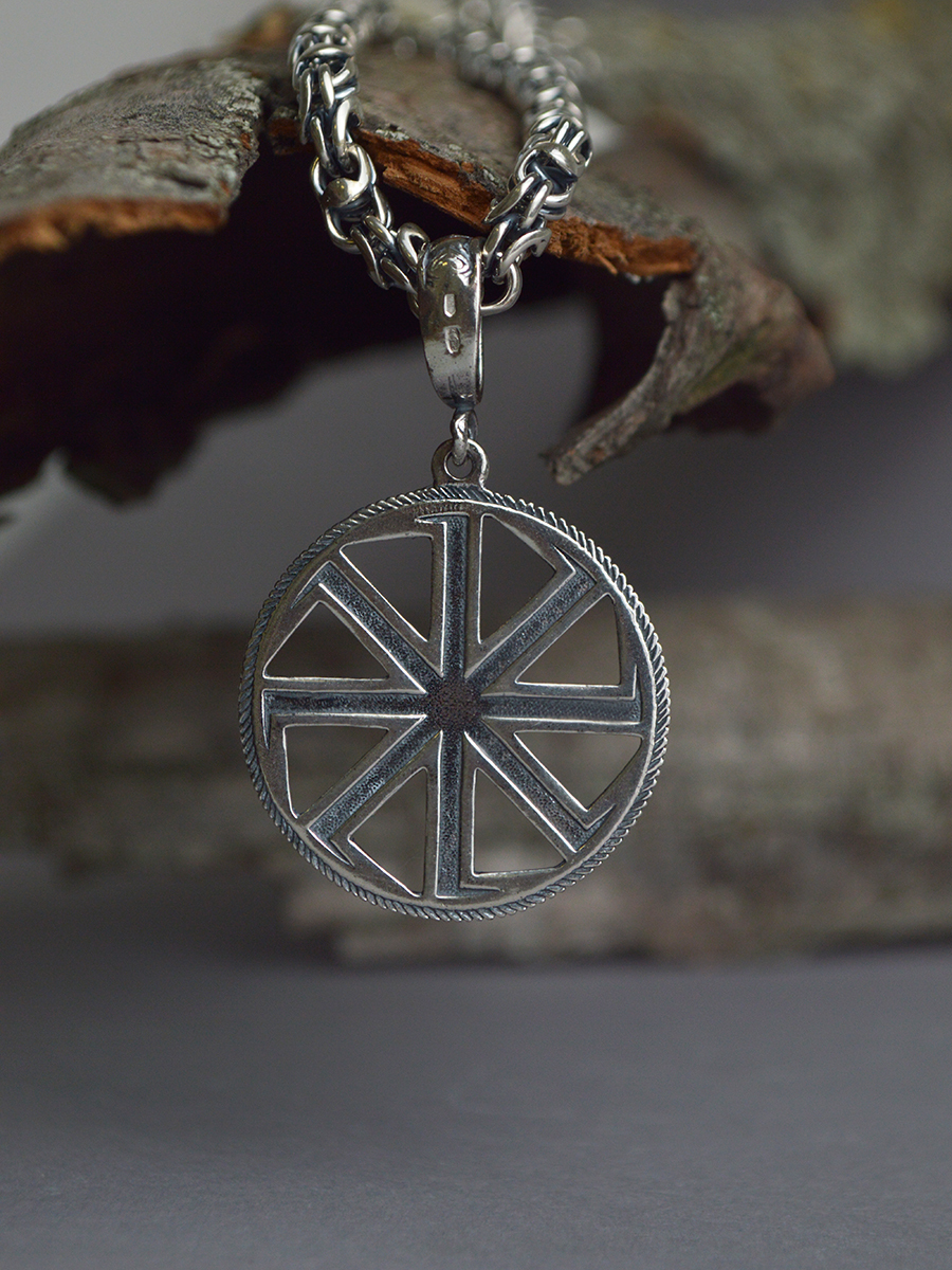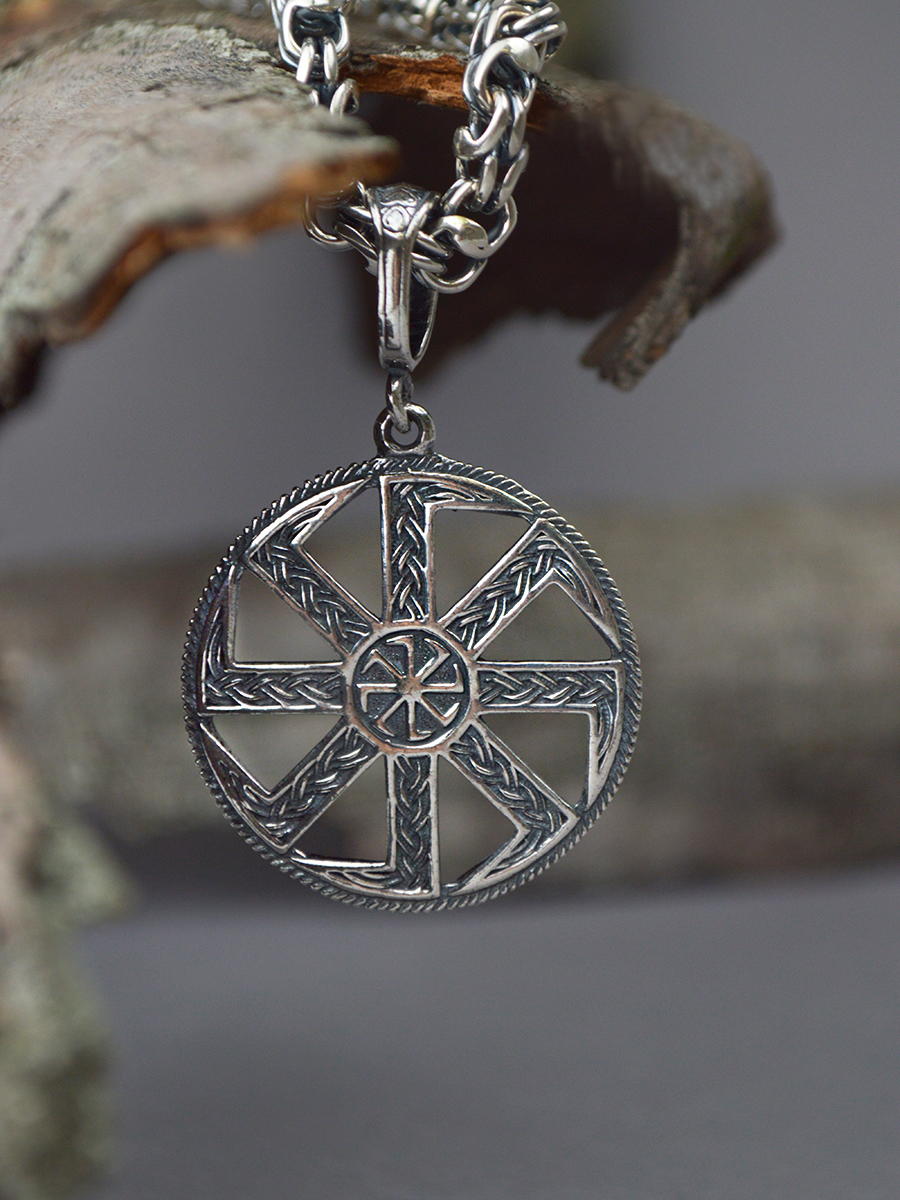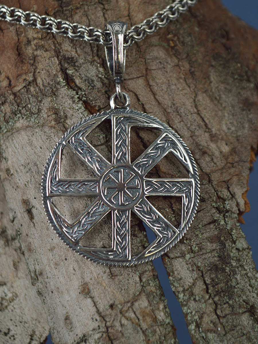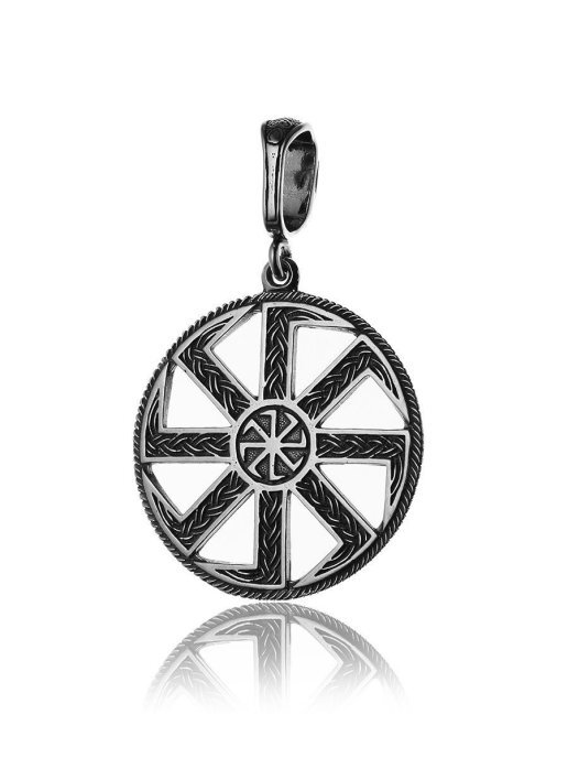TOP CRYSTAL Подвеска "Коловрат (Солнцеворот)" серебряная, чернение, диаметром 35,0 мм