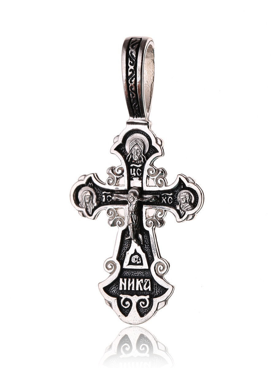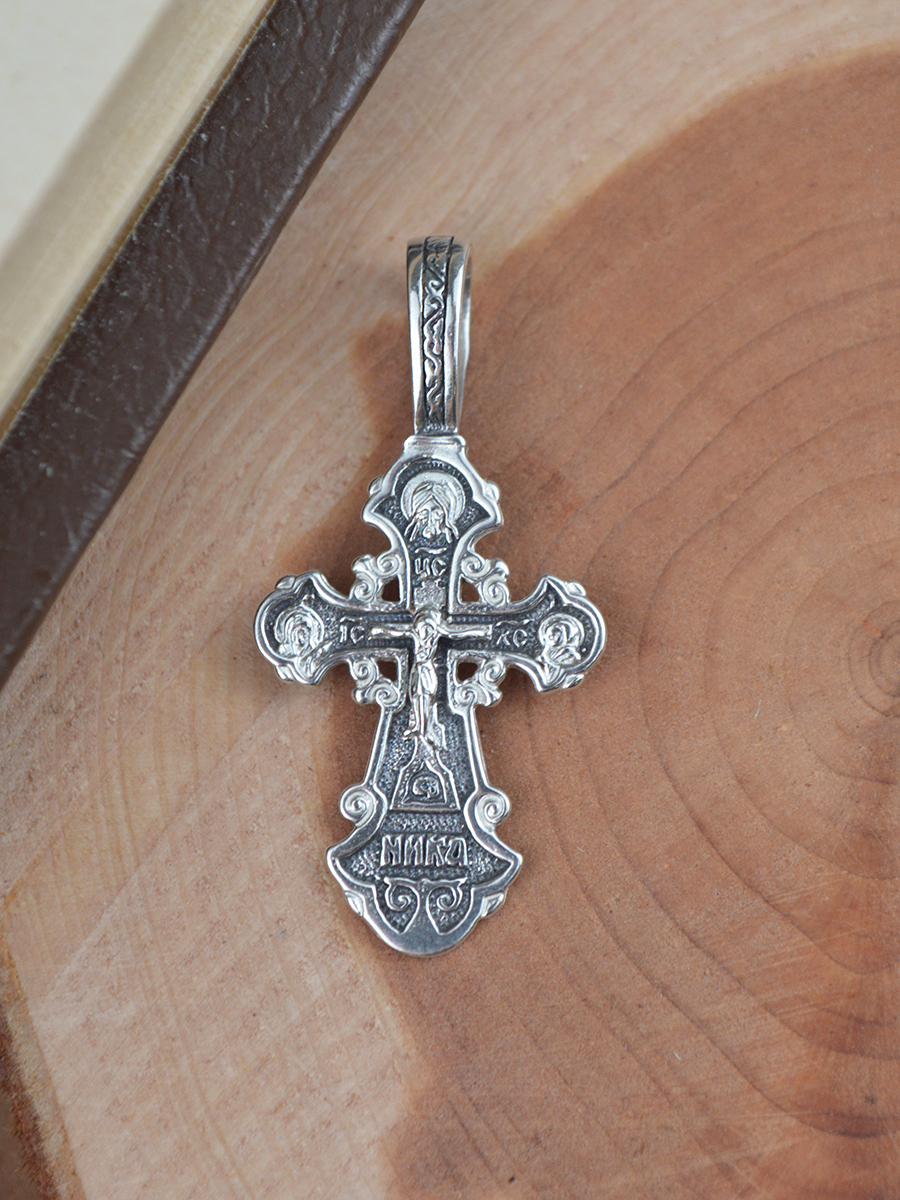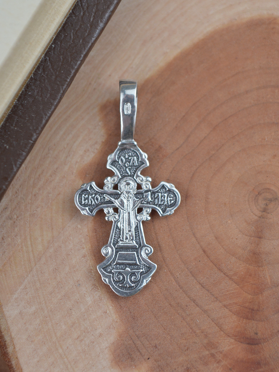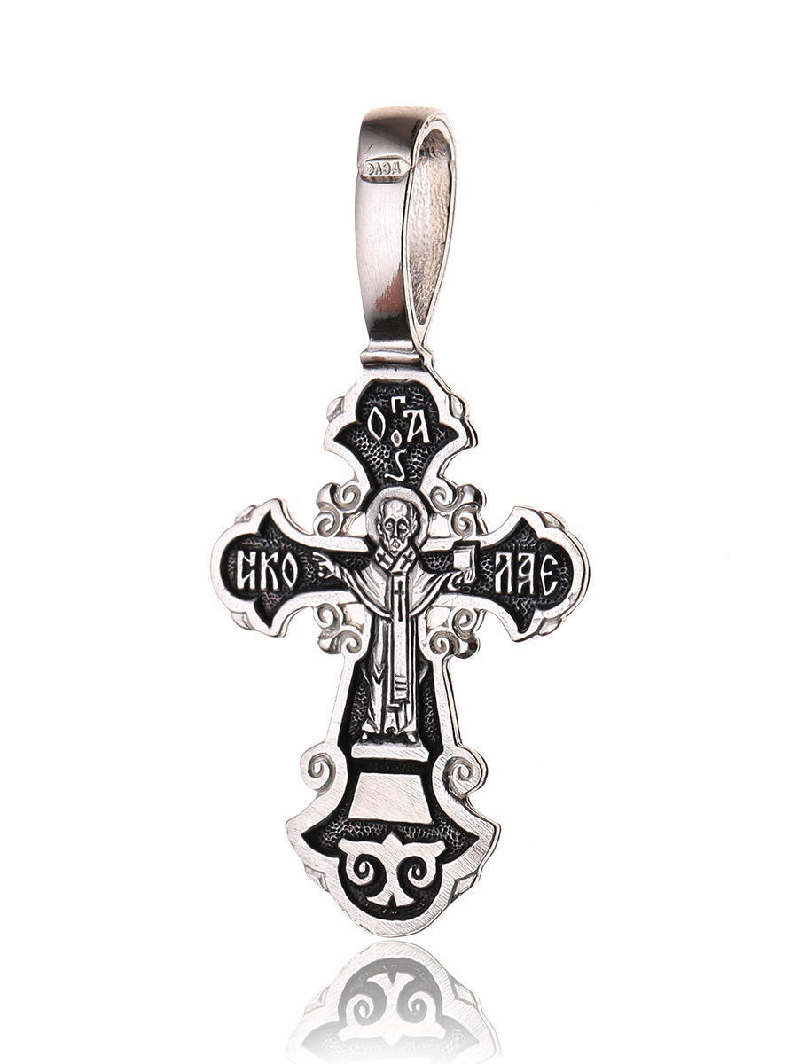 TOP CRYSTAL Подвеска Крест нательный с Распятием Иисуса Христа и изображением Николая Чудотворца