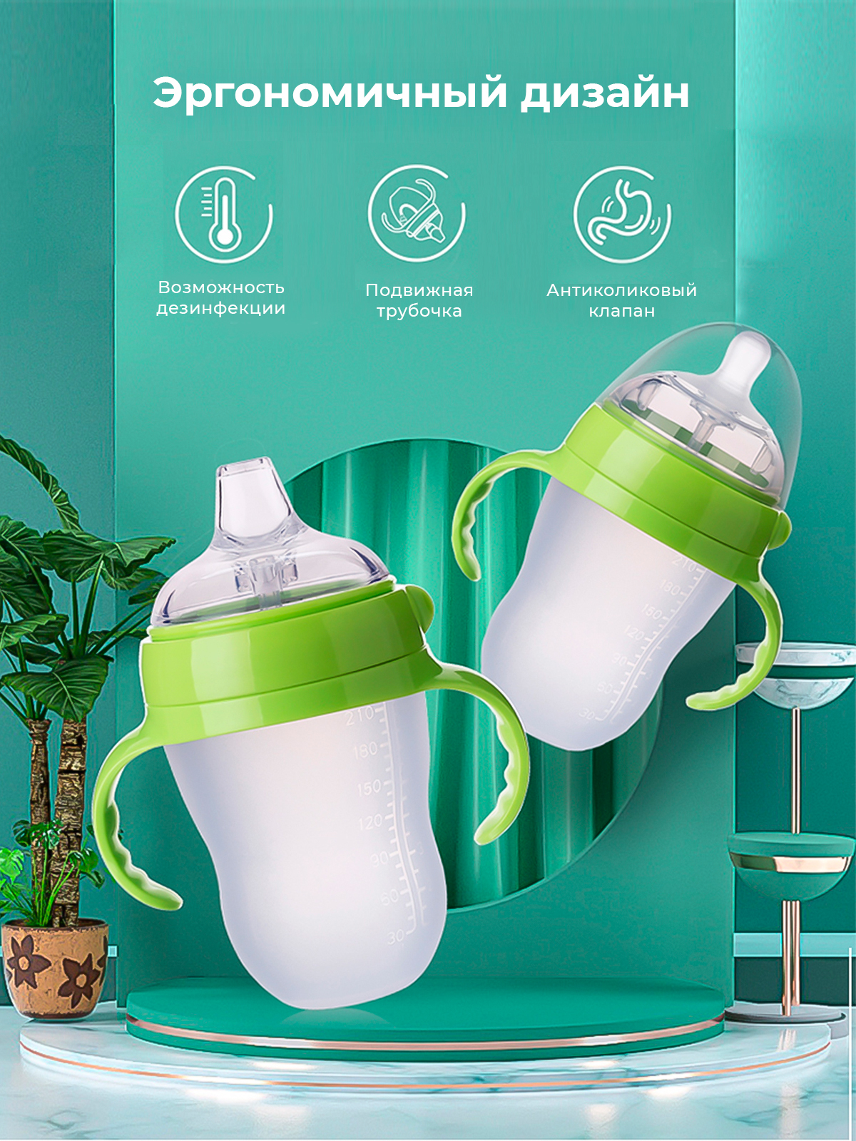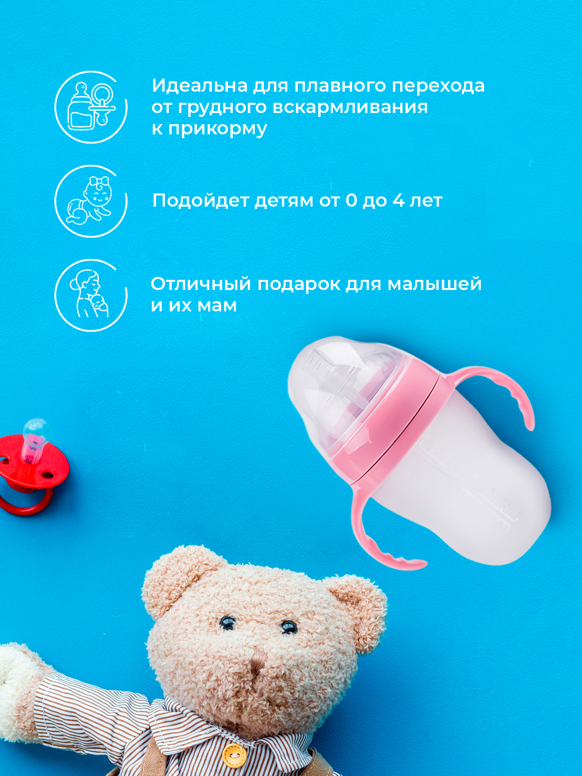 Бутылочка для кормления от 0 месяцев антиколиковая, силиконовая бутылочка для кормления ортодоническая с широким горлышком
