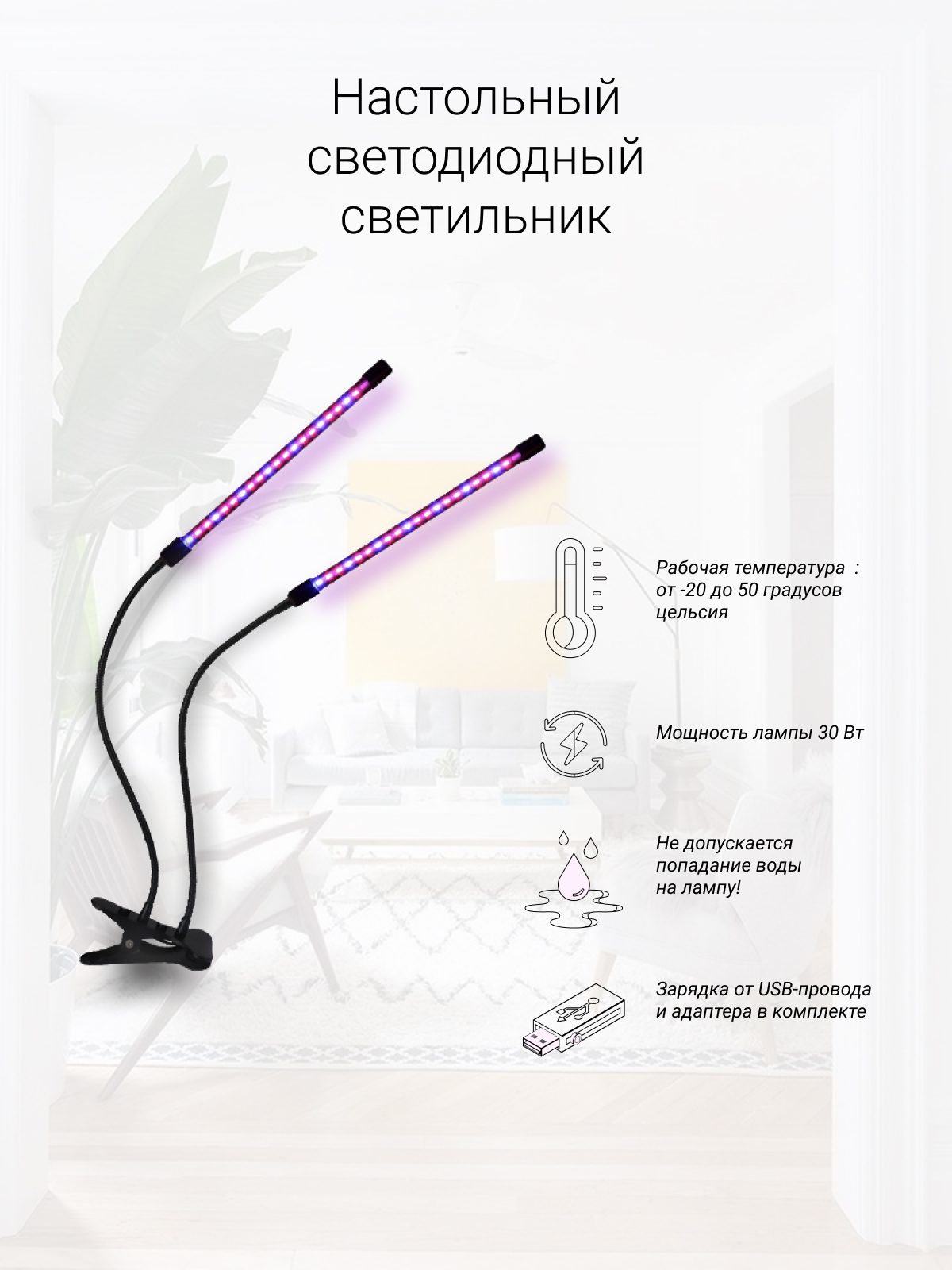 Фитолампа для растений полного спектра, 2 фитолампы для растений светодиодных, фито лампа для рассады, 2 фитосветильника для растений