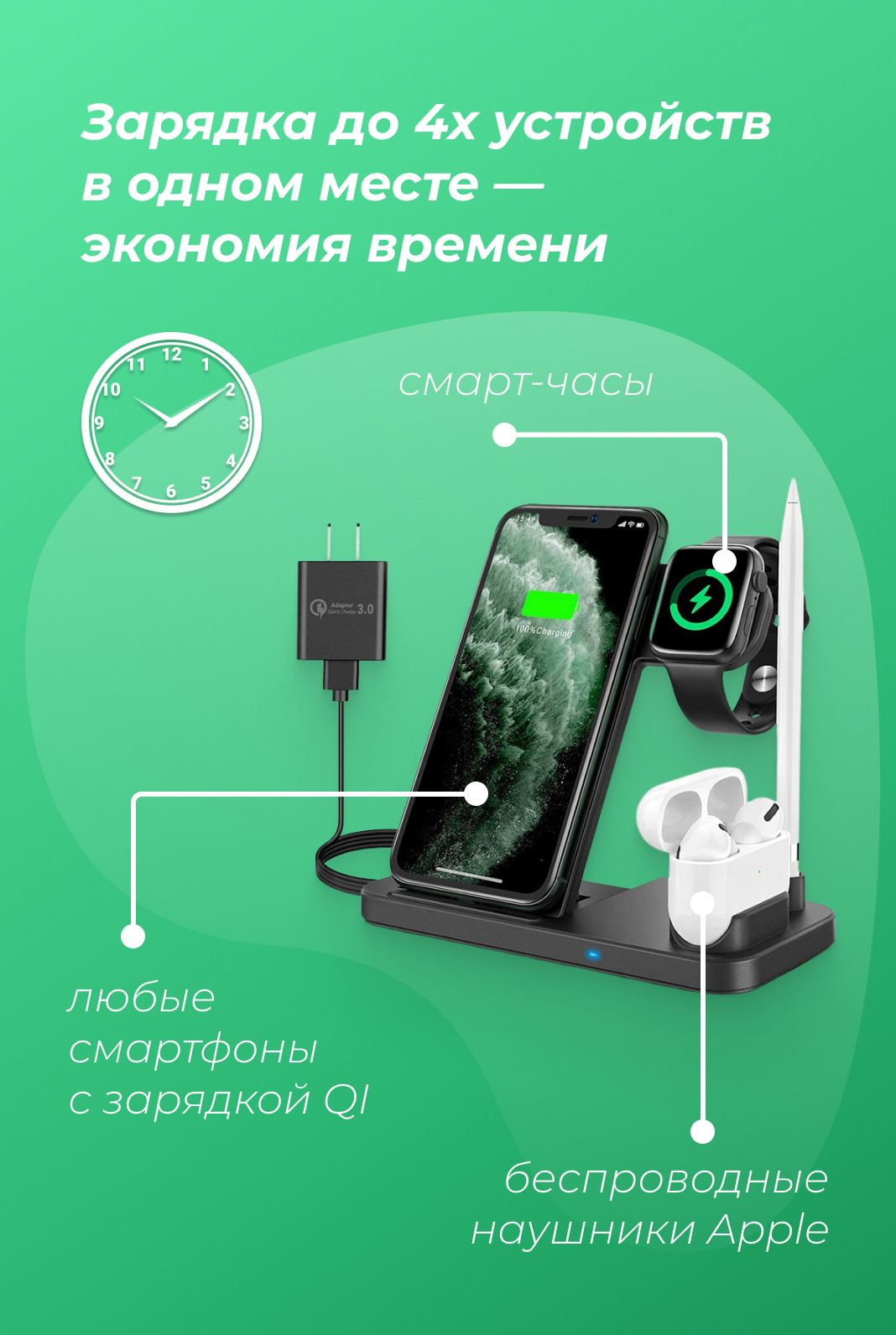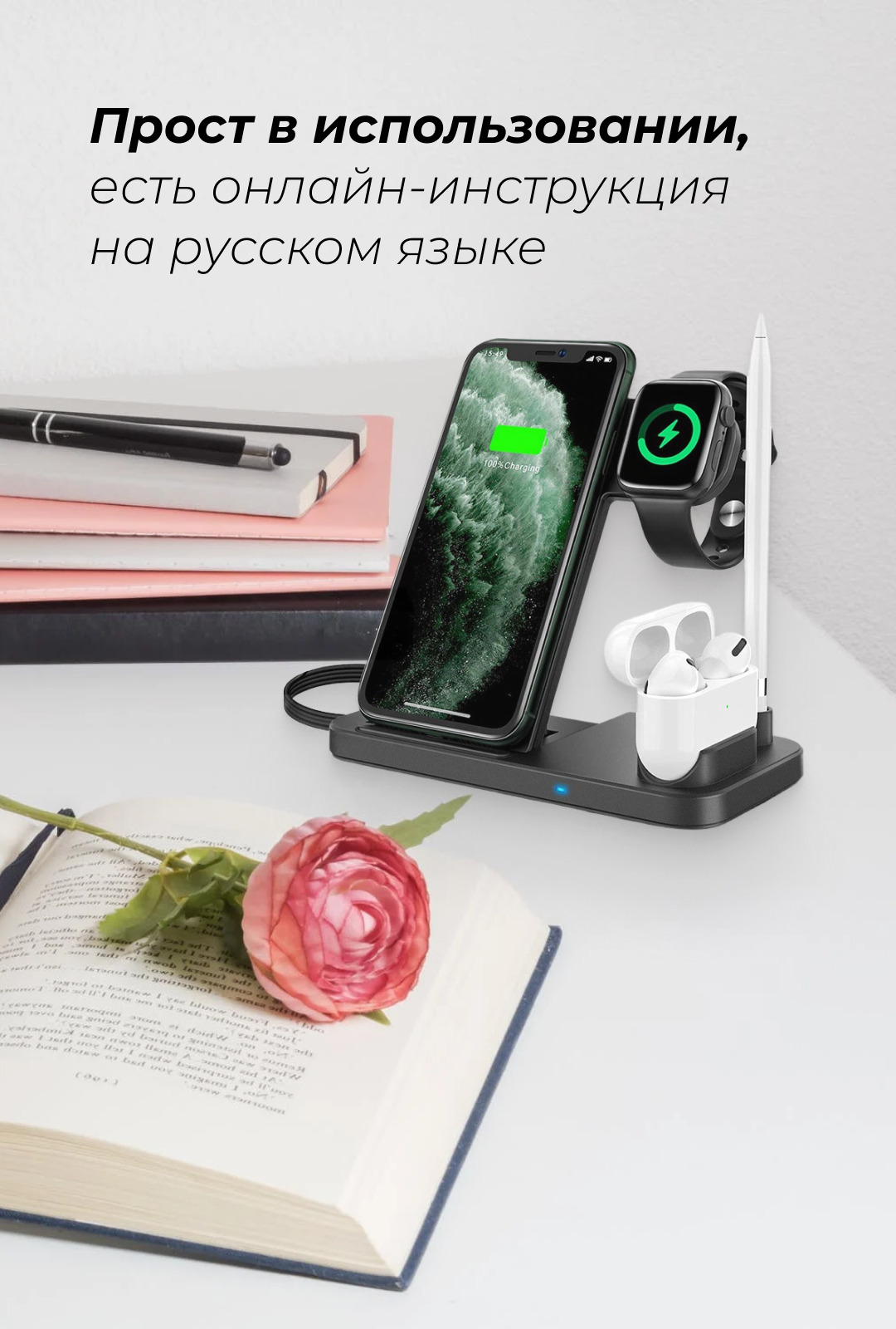 Беспроводная зарядка для iphone, Apple Watch, Airpods, Apple Pencil 4 в 1, беспроводное зарядное устройство для телефона 4 в 1, беспроводная зарядка для телефона