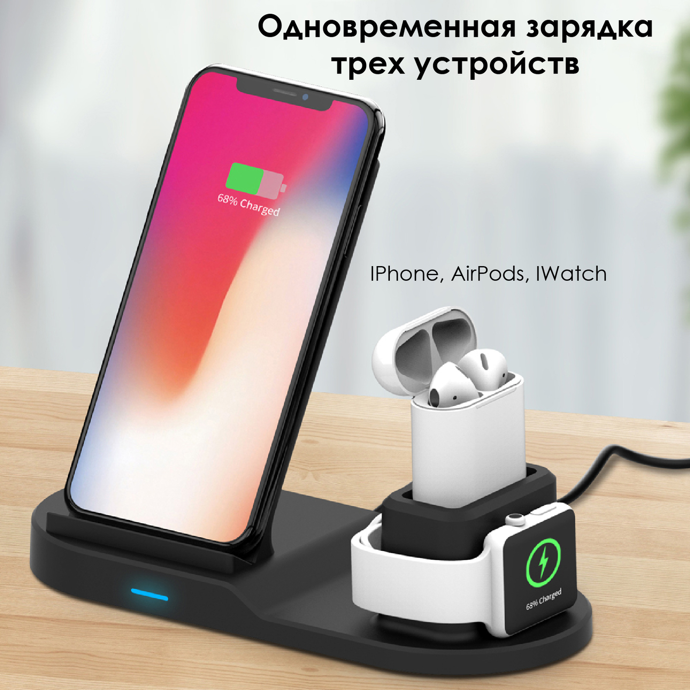 Беспроводное зарядное устройство 3 в 1 QI для iphone и android, зарядное устройство с быстрой зарядкой 15W для AirPods 1, 2, Pro и часов Apple Watch series 1-6
