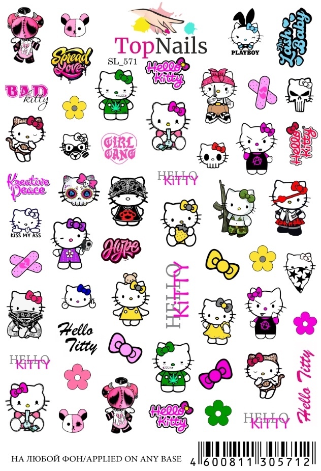 Top Nails/ Слайдер (водные наклейки) для дизайна ногтей/Hello Kitty