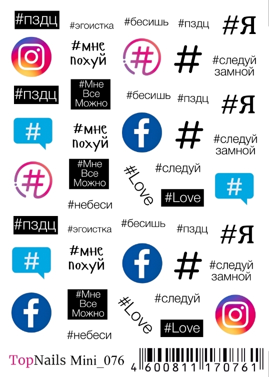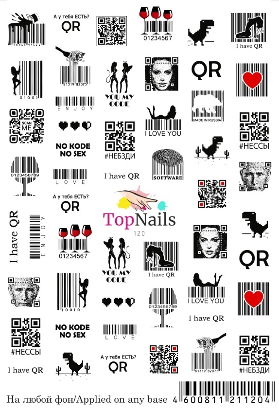Top Nails/ Слайдер (водные наклейки) для дизайна ногтей/Надписи/QR