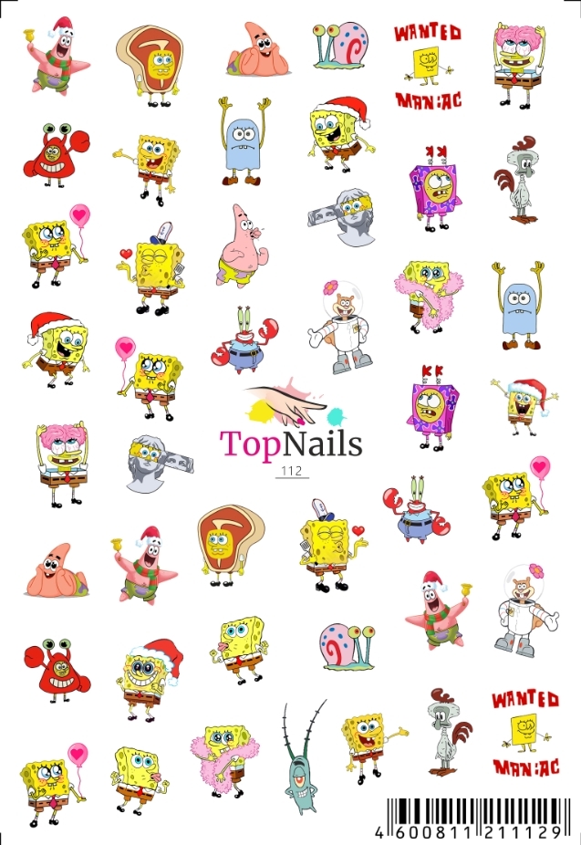 Top Nails/ Слайдер (водные наклейки) для дизайна ногтей/Тетрадь смерти/Губка Боб
