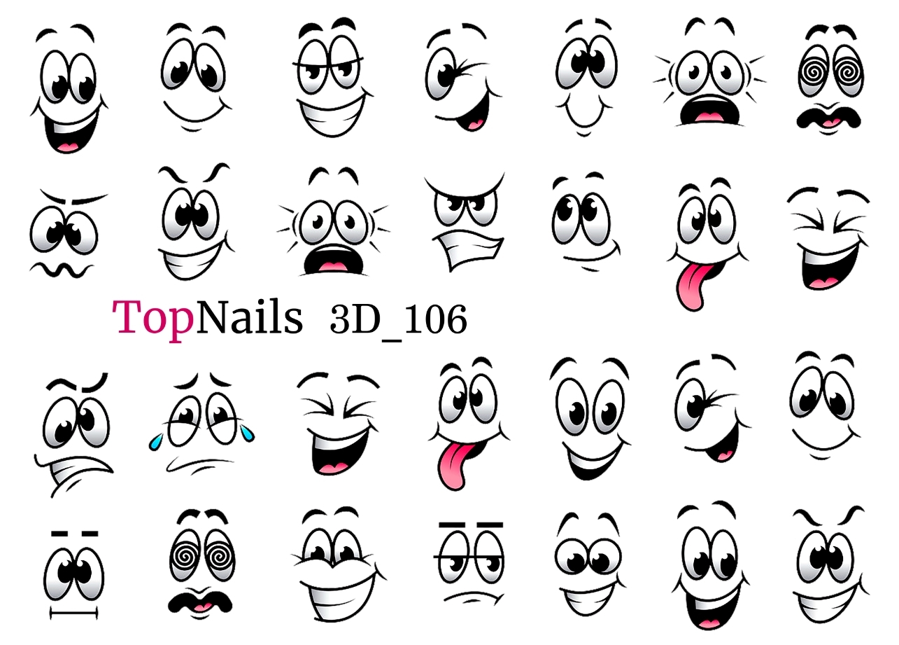 Top Nails/3D Слайдер дизайн/водные наклейки для ногтей/наклейки на ногти/Эмоции/Лица