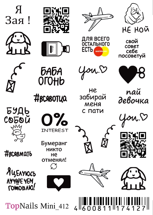 Top Nails/ Слайдер (водные наклейки) для дизайна ногтей/Надписи/QR