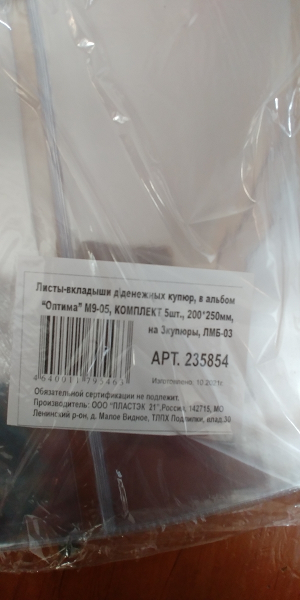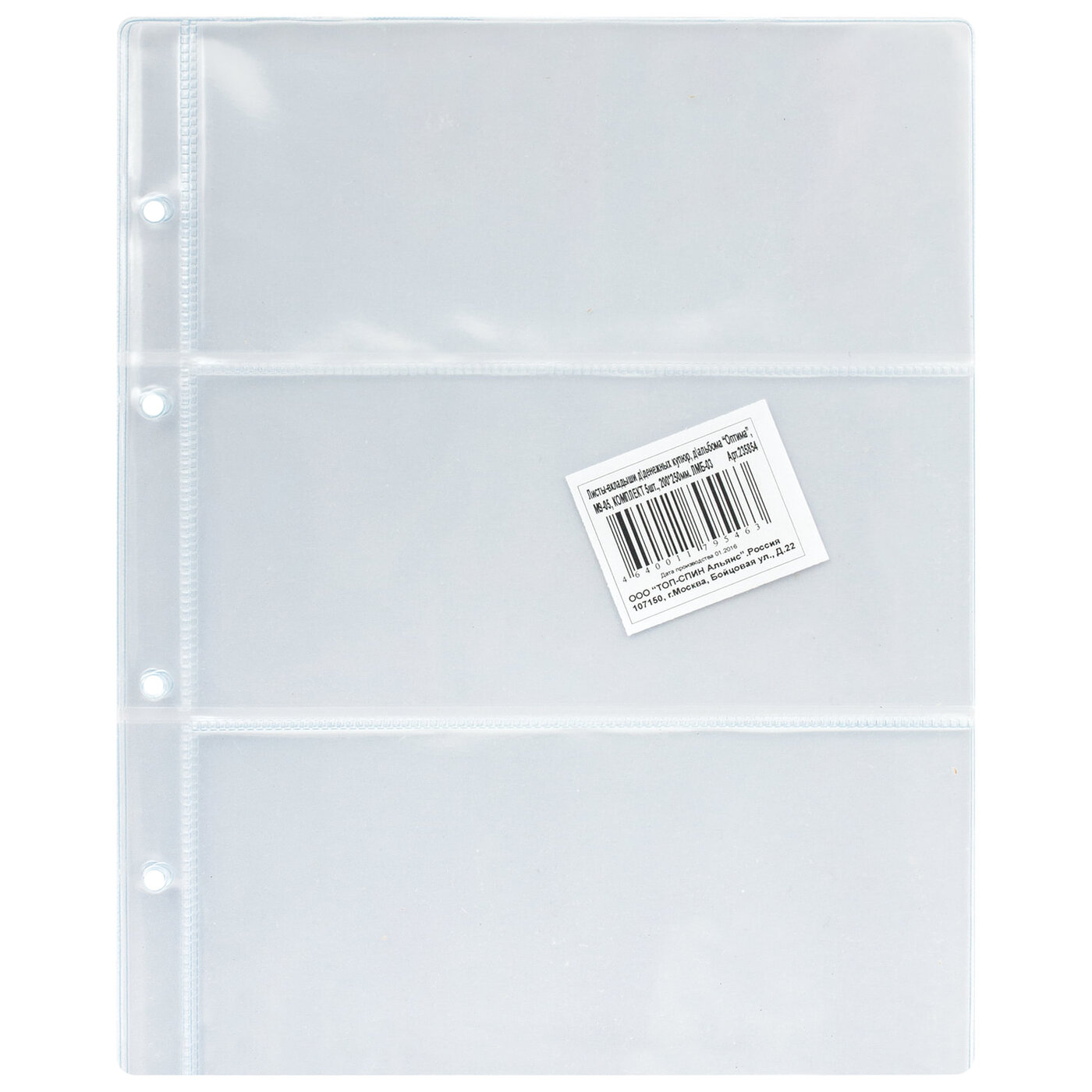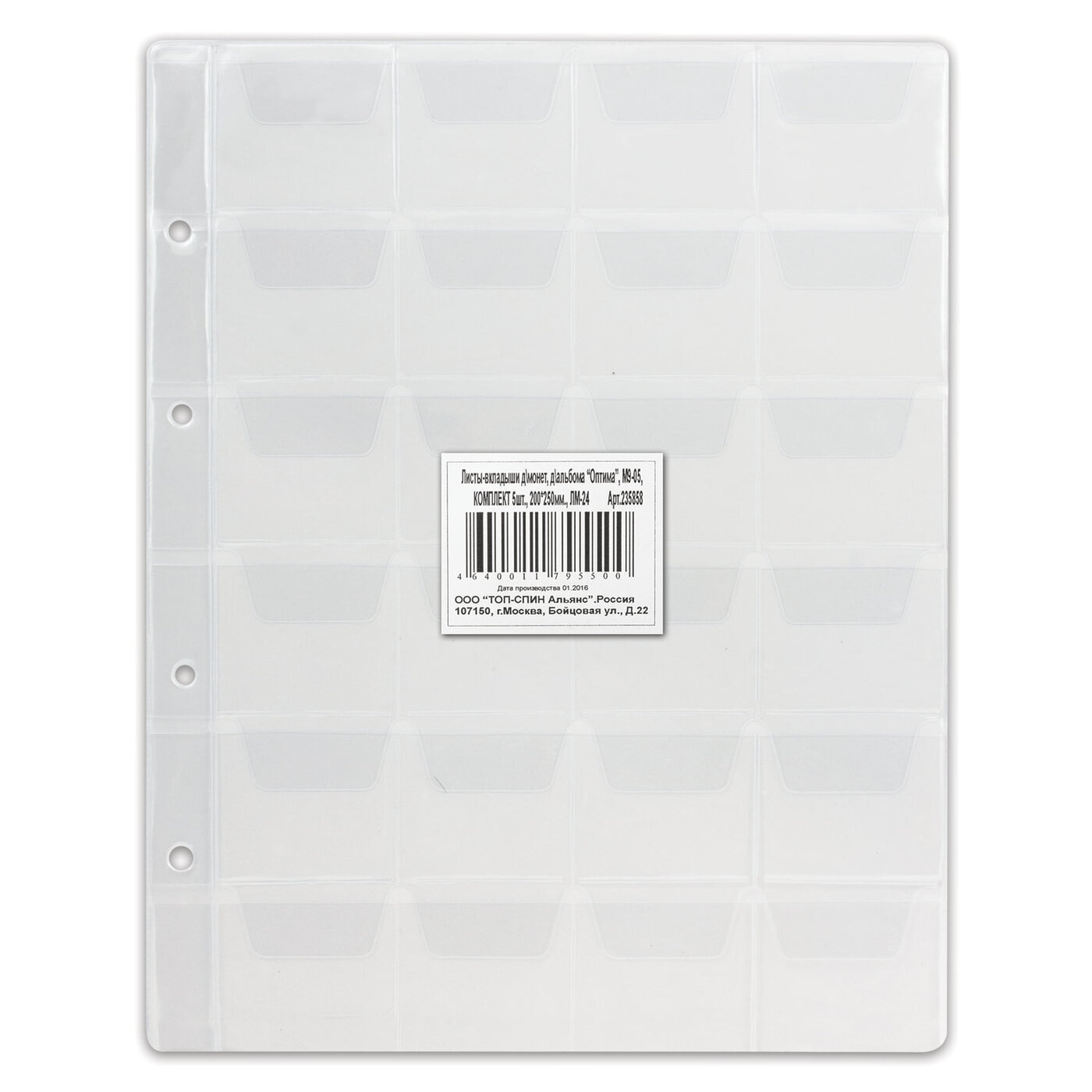 Листы-вкладыши для монет для альбома Оптима М9-05, комплект 5 шт., 200х250 мм, 24 кармана, Лм-24