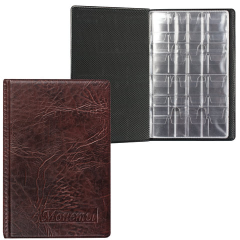 Альбом для монет, 115х170х10 мм, для 108 монет, 2+4+2 листа (карманы 23х25+32х40+52х54 мм), АМК-108К